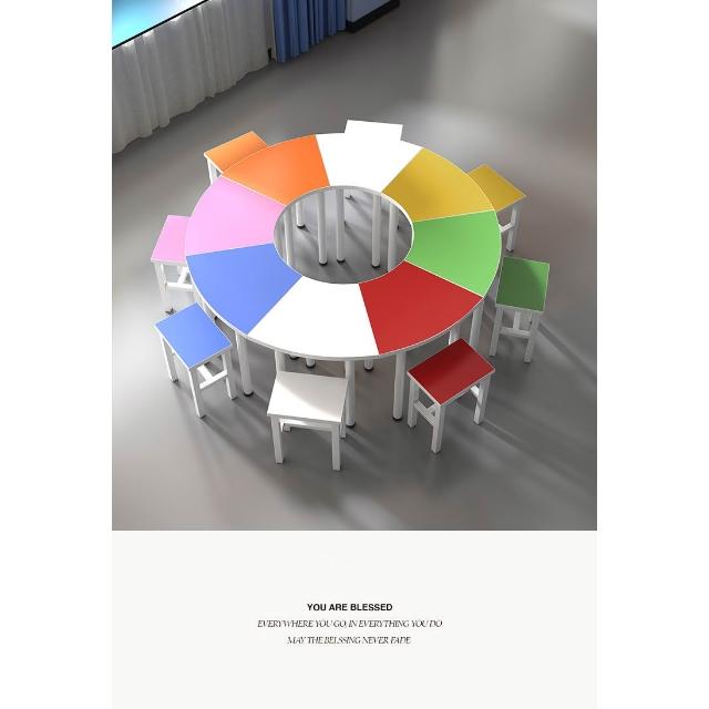 中小學生六邊形團體活動閱覽桌椅扇形組合圓桌拼接培訓心理輔導桌