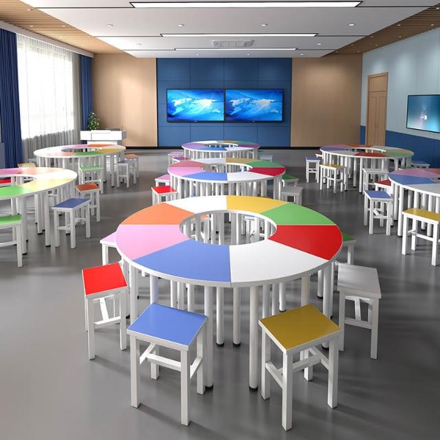 中小學生六邊形團體活動閱覽桌椅扇形組合圓桌拼接培訓心理輔導桌