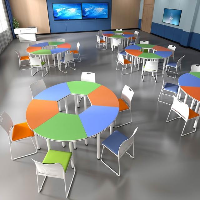 中小學生六邊形團體活動閱覽桌椅扇形組合圓桌拼接培訓心理輔導桌