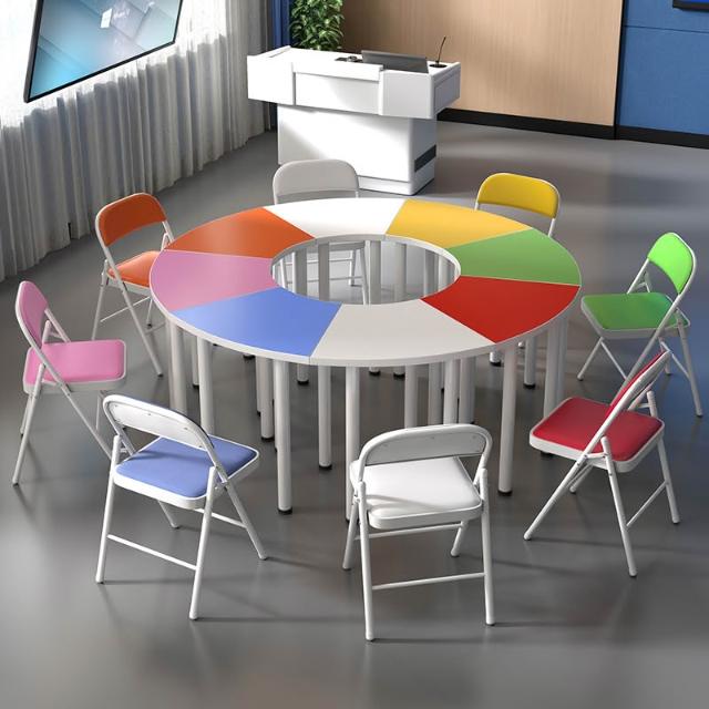 中小學生六邊形團體活動閱覽桌椅扇形組合圓桌拼接培訓心理輔導桌