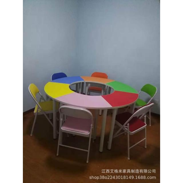中小學生六邊形團體活動閱覽桌椅扇形組合圓桌拼接培訓心理輔導桌