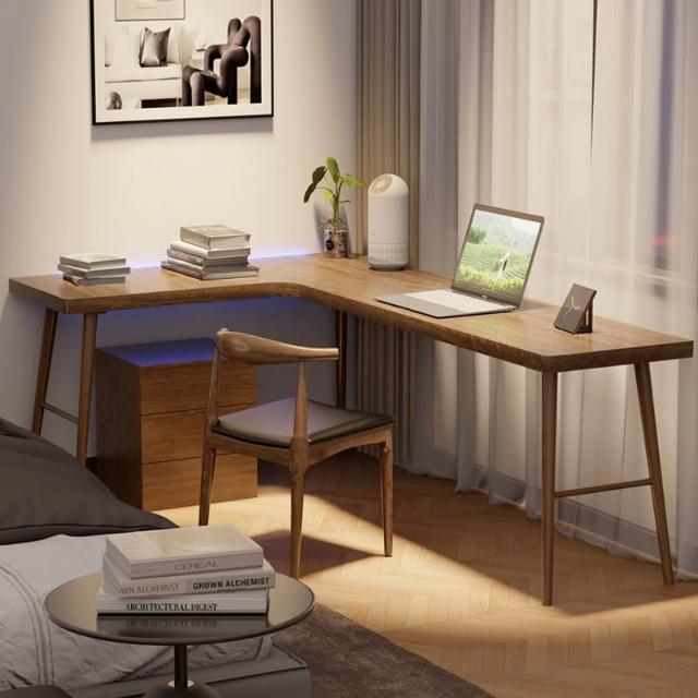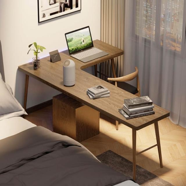 實木轉角書桌書架原木雙人電腦桌家用拐角長條桌l型工作臺寫字桌