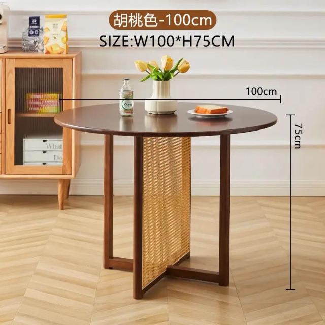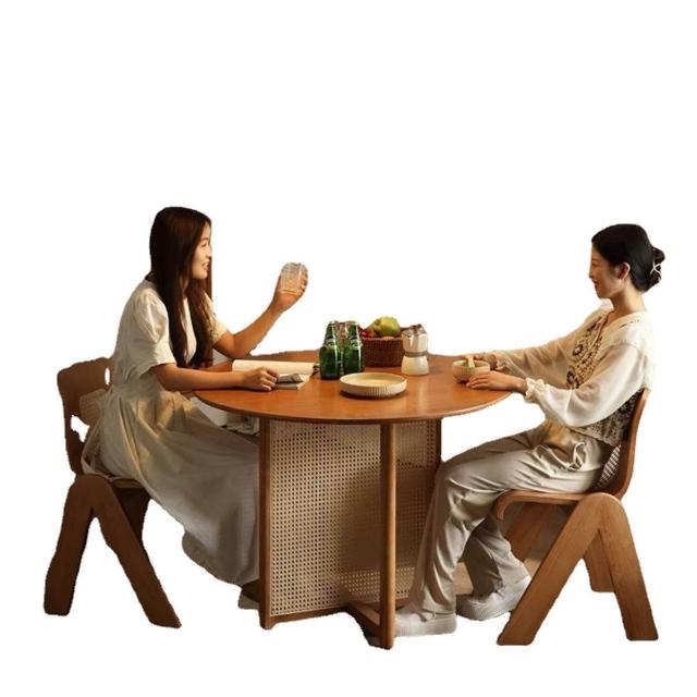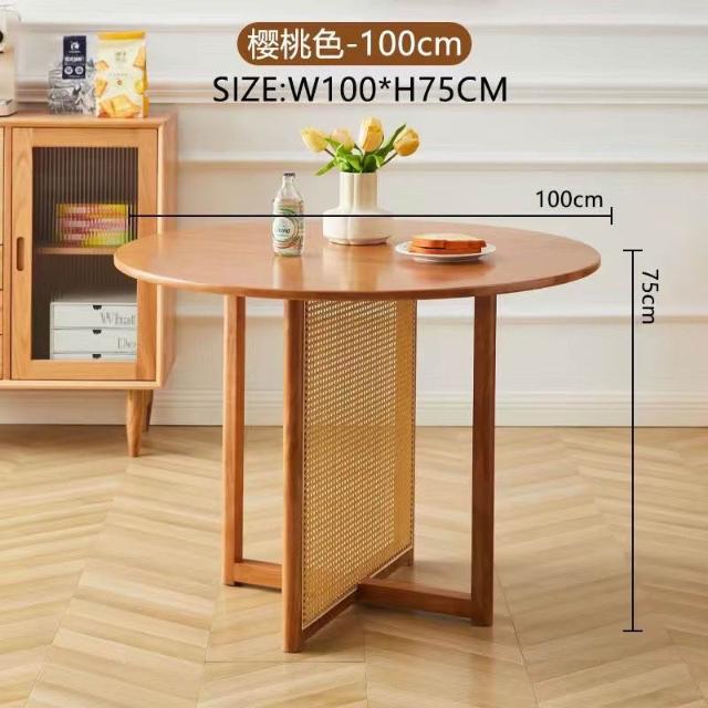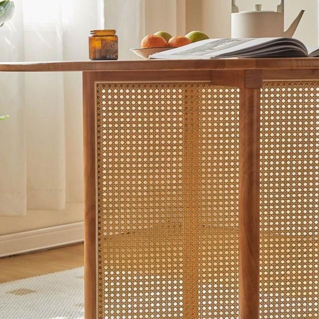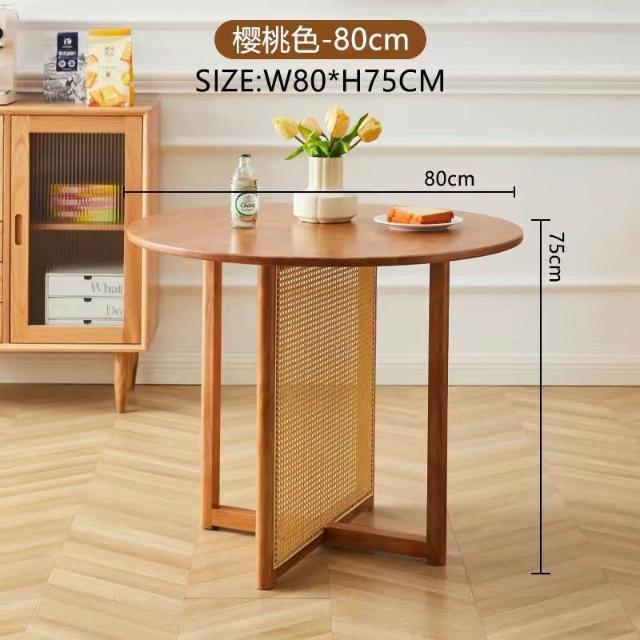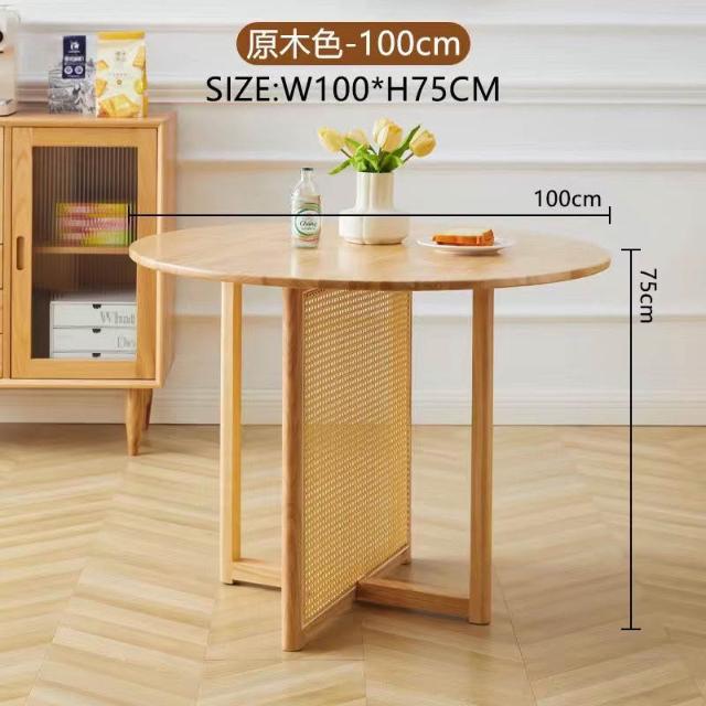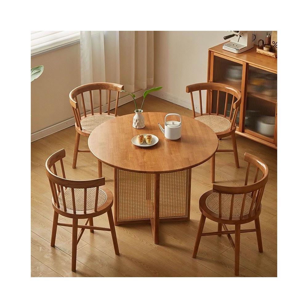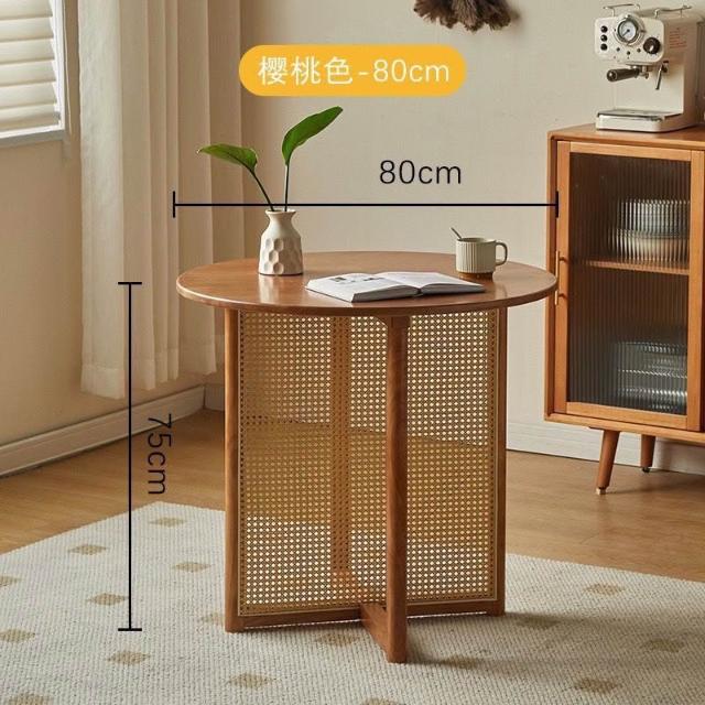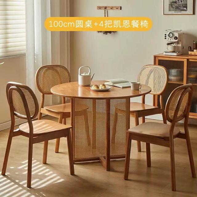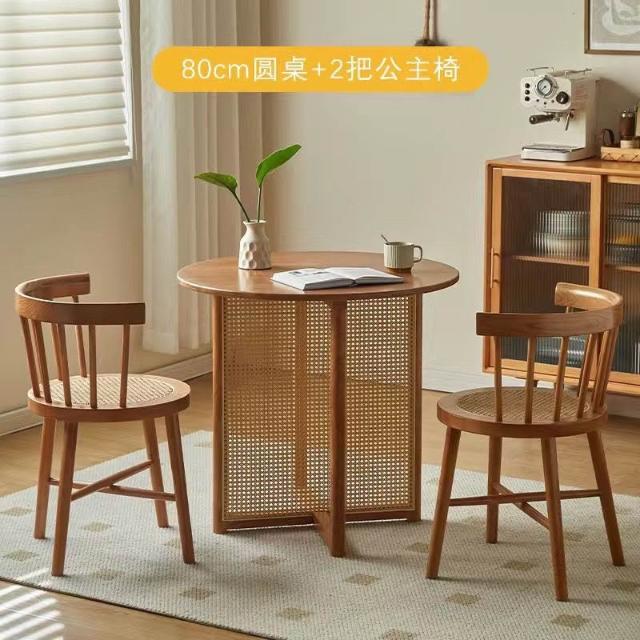 日式實木餐桌家用小戶型北歐藤編桌子長方形民宿詫寂風餐桌椅組合
