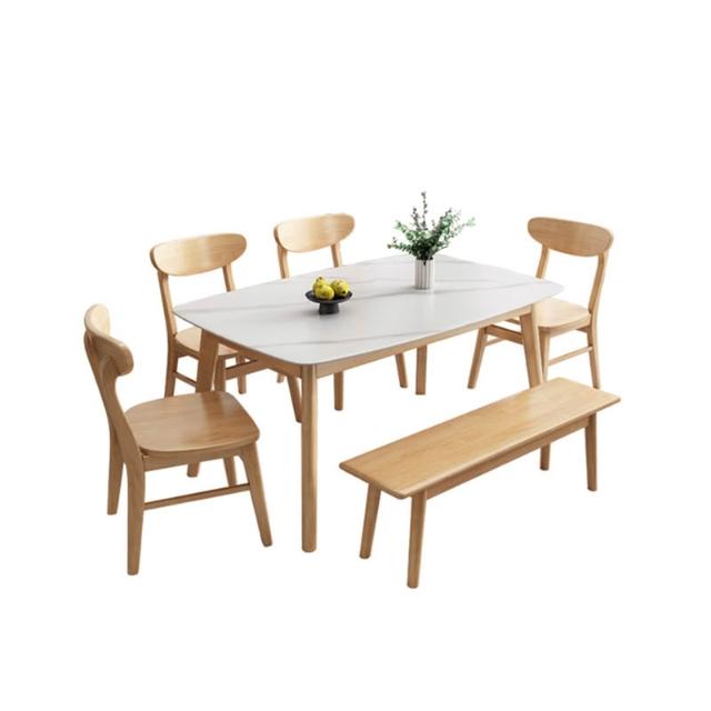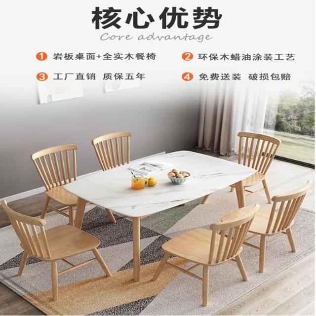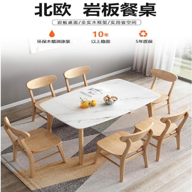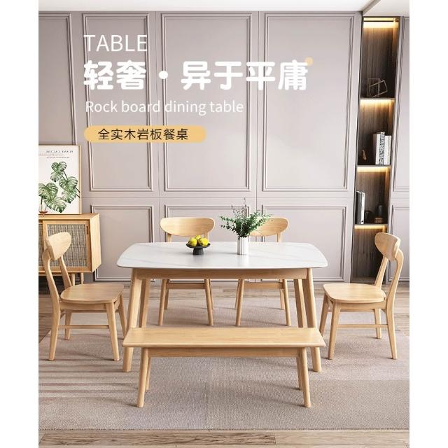 全實木岩板餐桌日式餐廳現代簡約長方形飯桌北歐家用小戶型餐桌椅