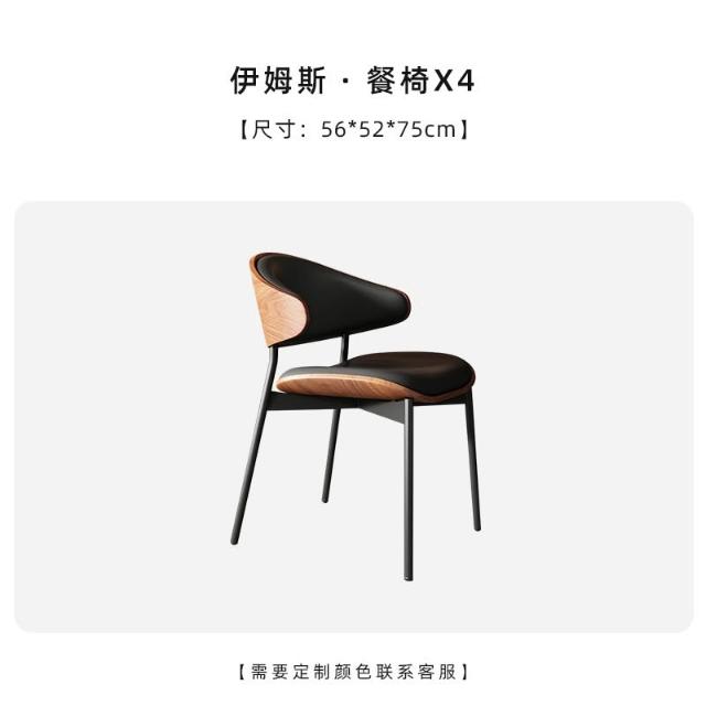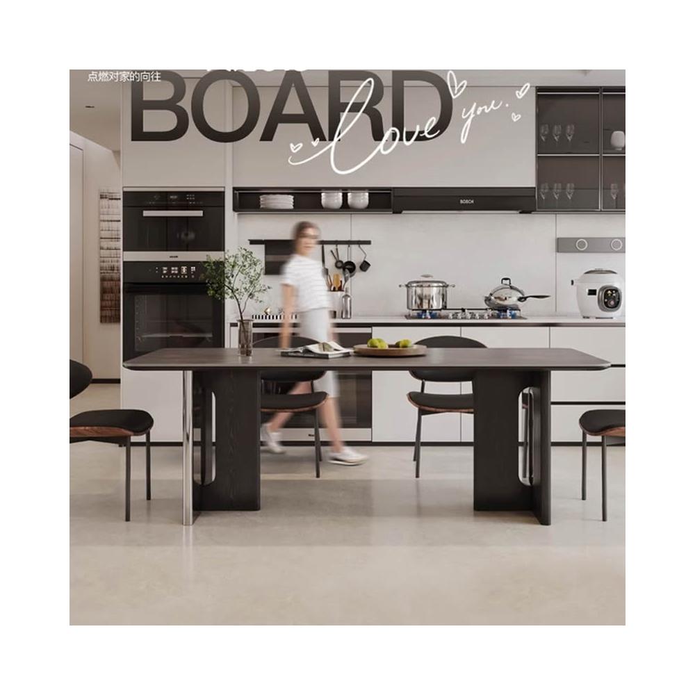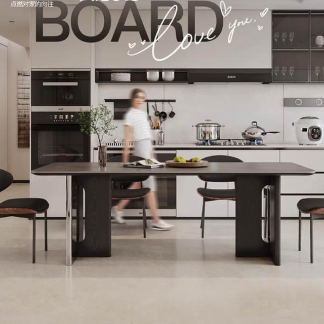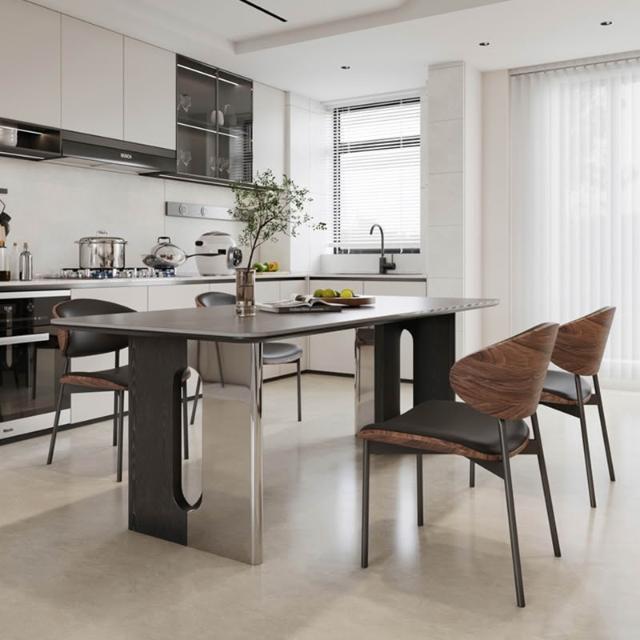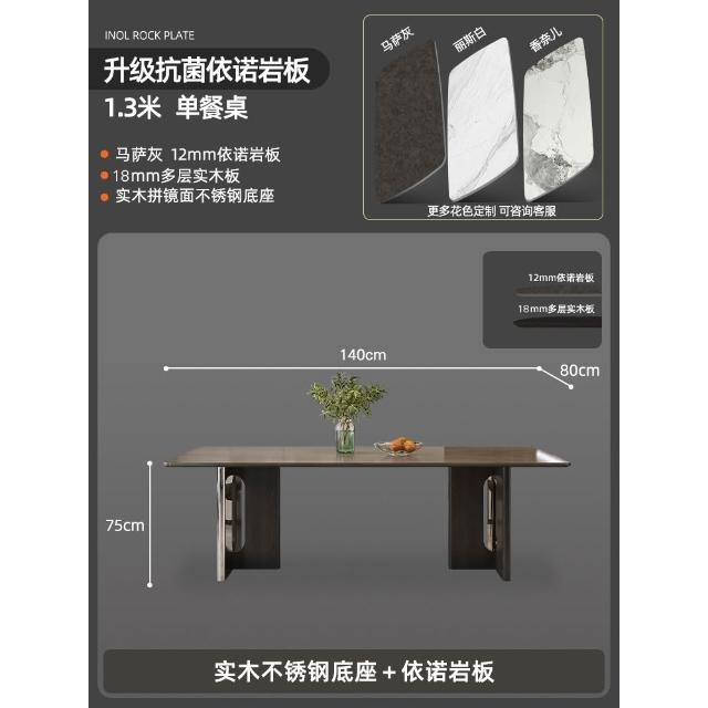 意式極簡實木岩板餐桌復古風小戶型不銹鋼長方形餐桌椅組合家用