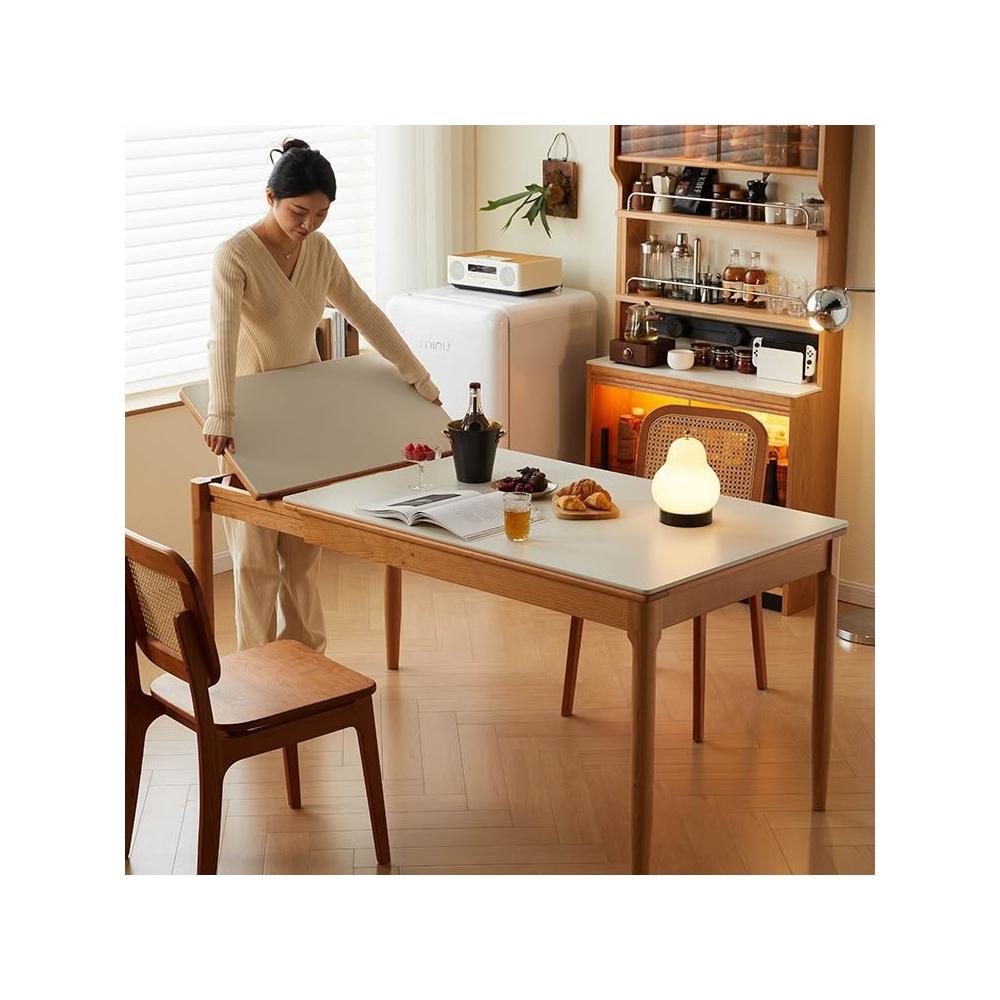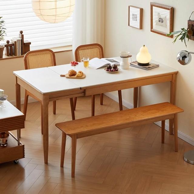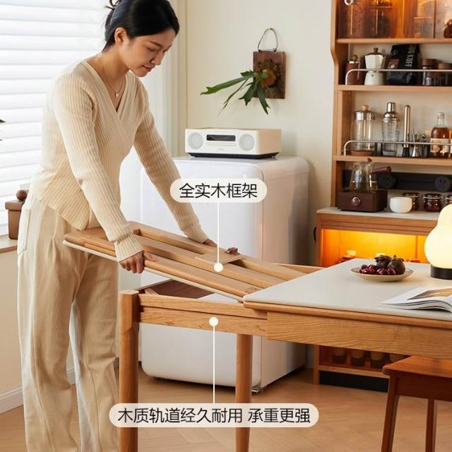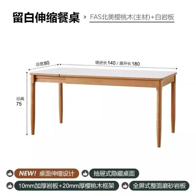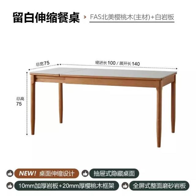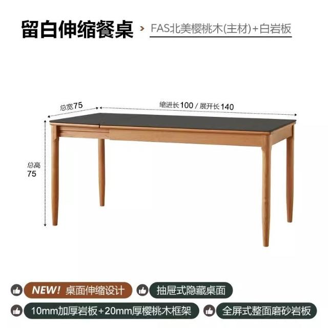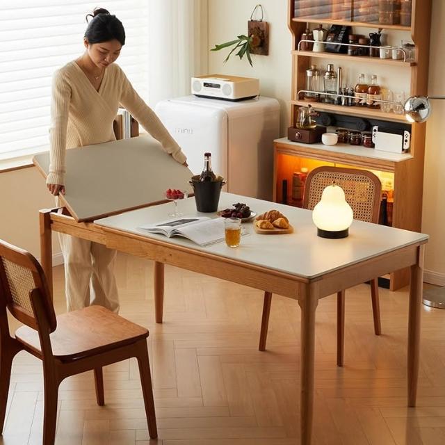 YD實木岩板餐桌可伸縮日式家用小戶型簡約餐廳櫻桃木可折疊餐桌