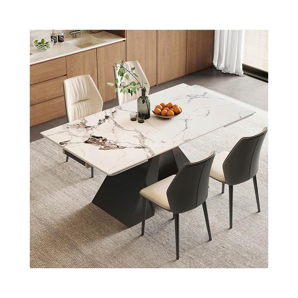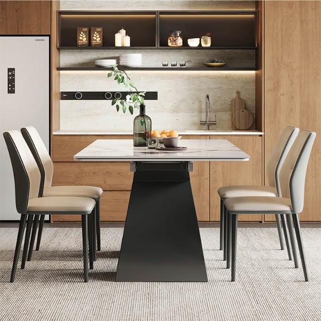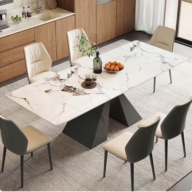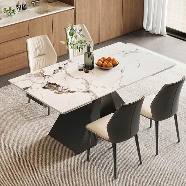 意式極簡可伸縮岩板餐桌現代簡約輕奢家用小戶型長方形餐桌椅組合