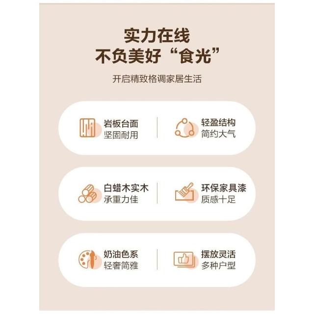 北歐實木岩板半圓餐桌奶油風島臺一體家用小戶型橢圓形極簡靠牆桌