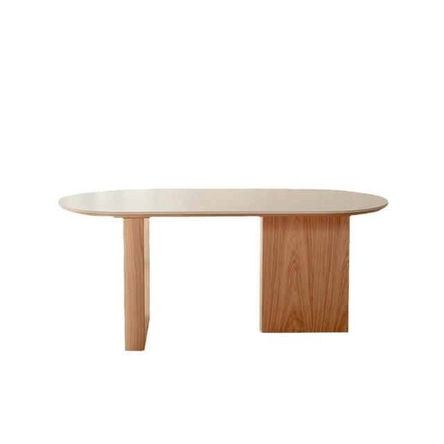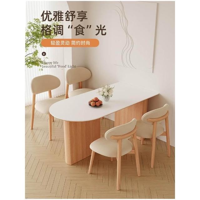 北歐實木岩板半圓餐桌奶油風島臺一體家用小戶型橢圓形極簡靠牆桌