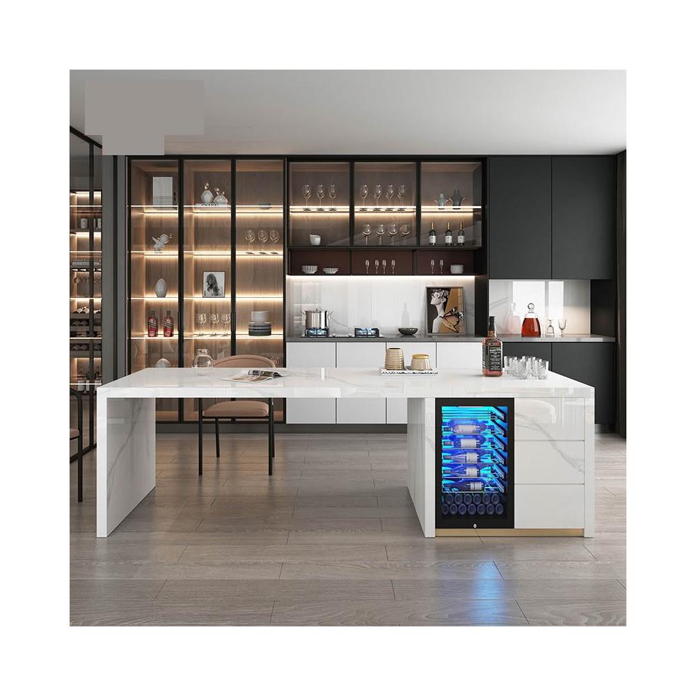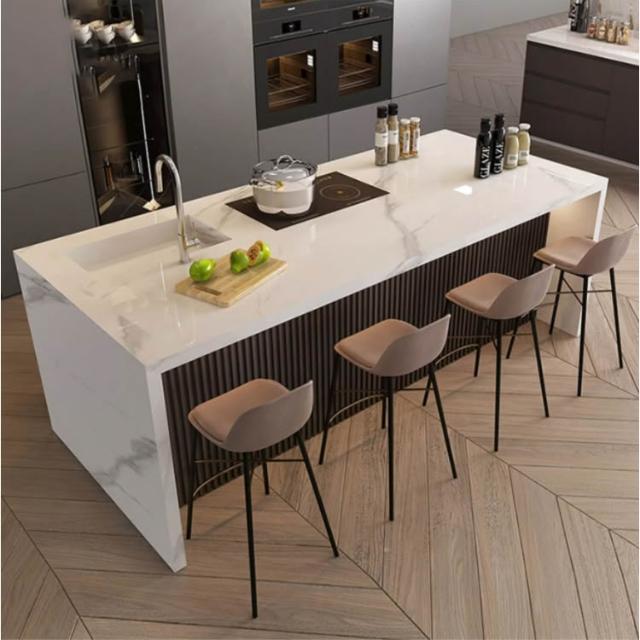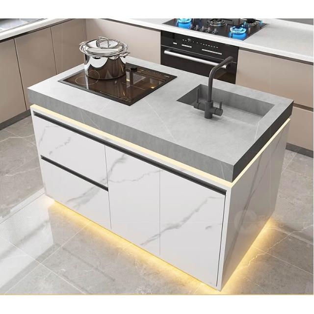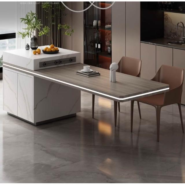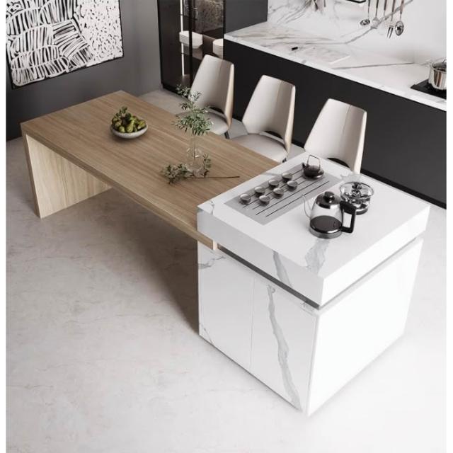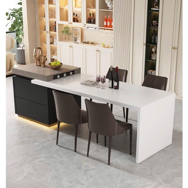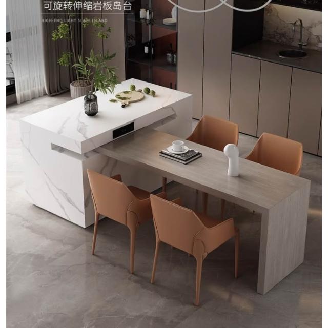 岩板中島臺餐桌一體單獨廚房高端茶臺伸縮導臺西廚家用輕奢吧臺
