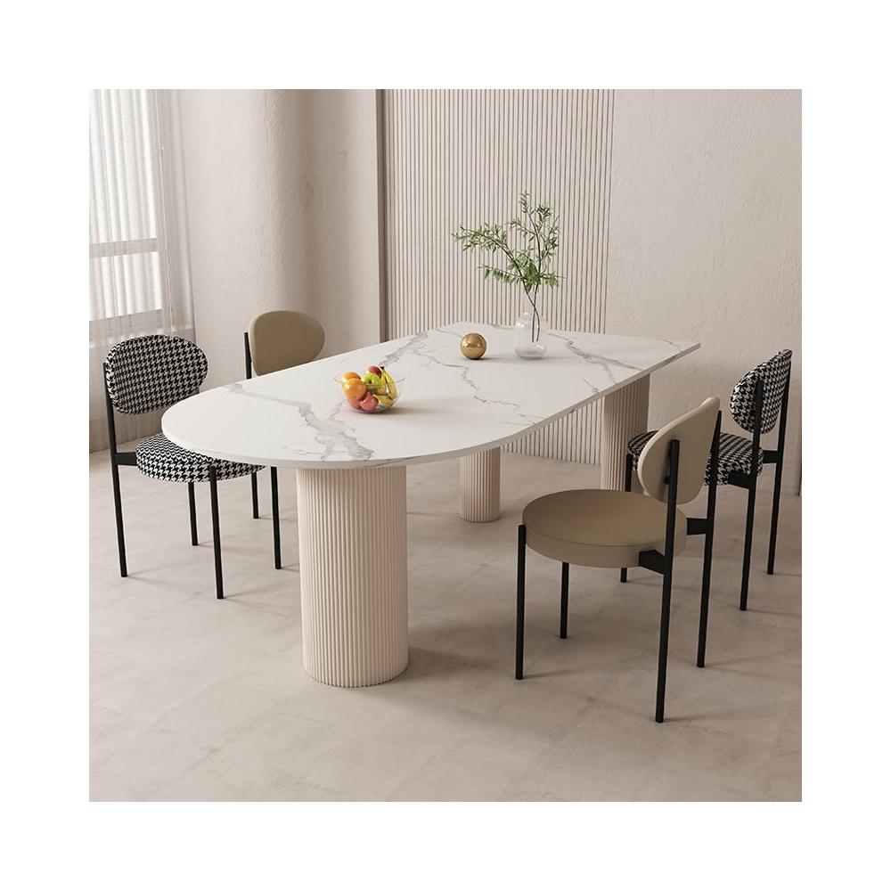 岩板島臺餐桌一體弧形靠牆半圓餐桌家用現代簡約餐廳桌椅組合