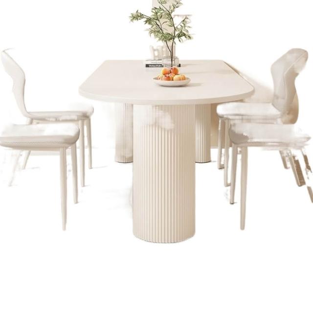 法式奶油風羅馬柱岩板餐桌蝴蝶椅組合家用小戶型輕奢島臺一體餐桌