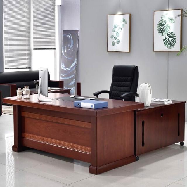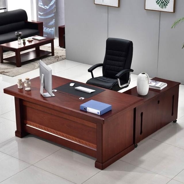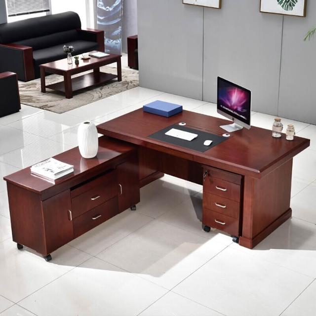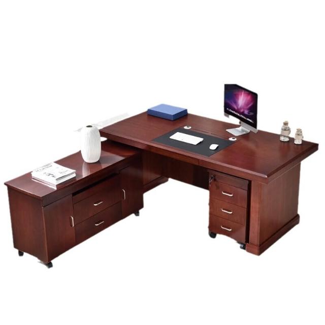 老闆桌油漆貼木皮經理桌大班台辦公室機關單位校長辦公桌帶側櫃