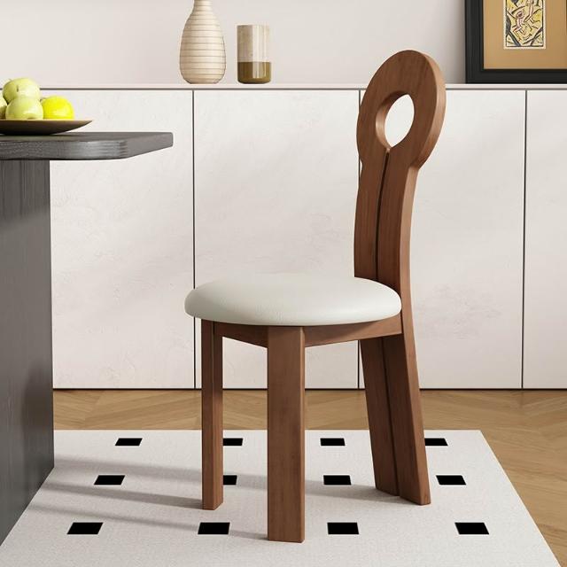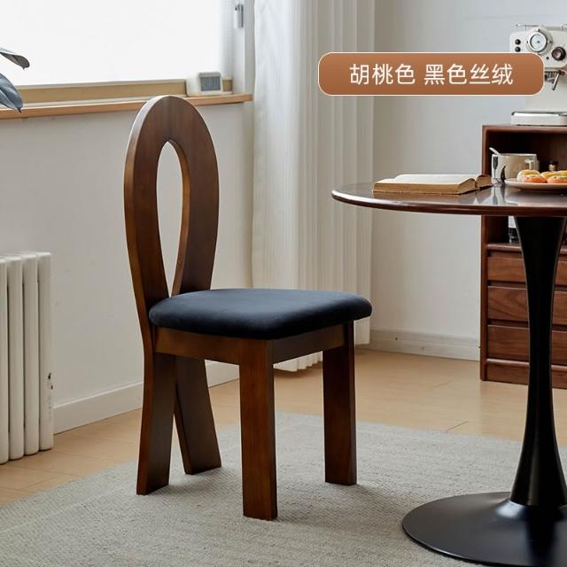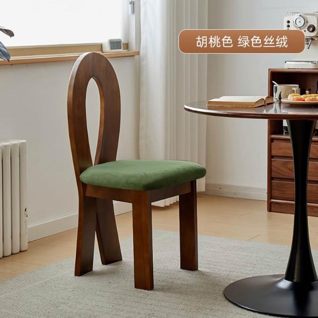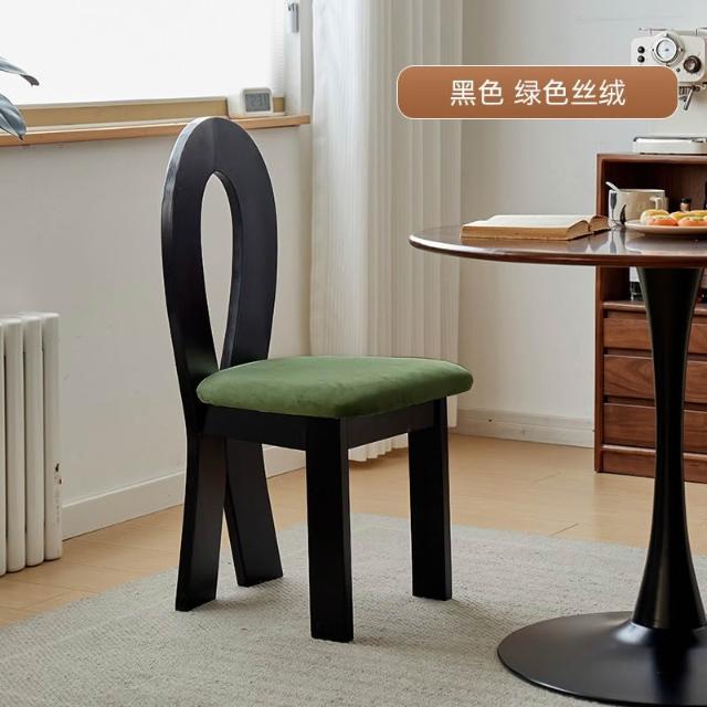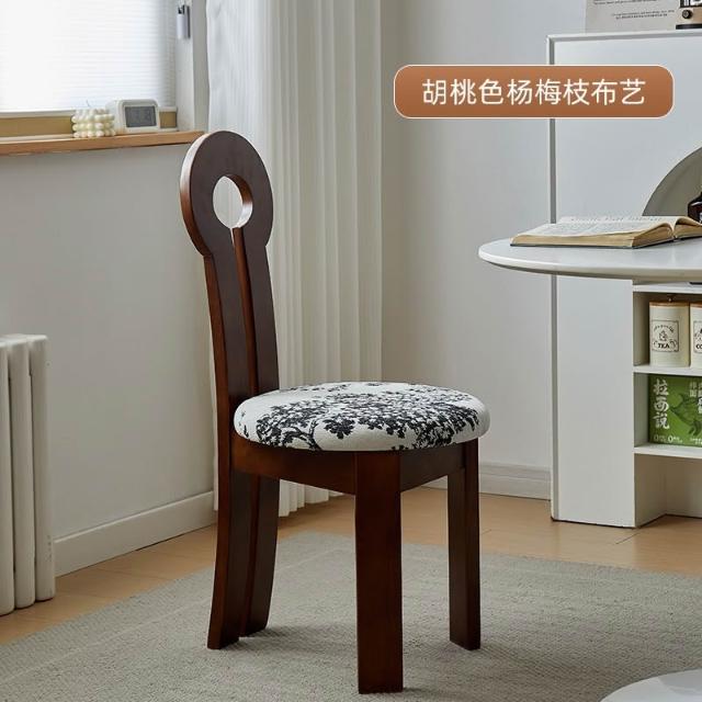 法式復古實木餐椅家用設計師中古靠背椅子侘寂風臥室化妝椅鑰匙椅