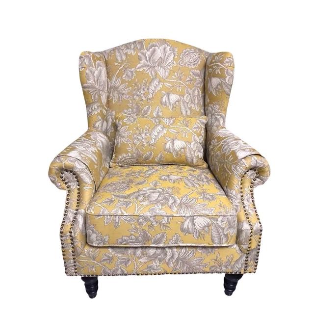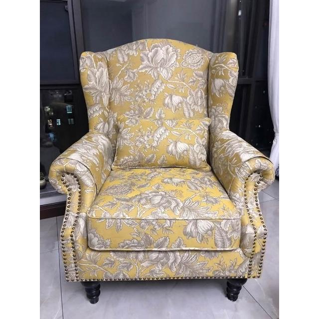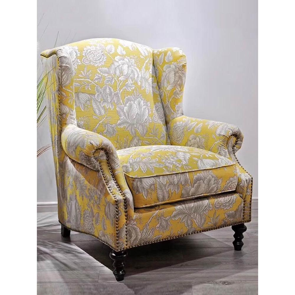 美式老虎椅布藝老虎凳傢俱單人沙發休閒椅客廳臥室乳膠黃色高背椅