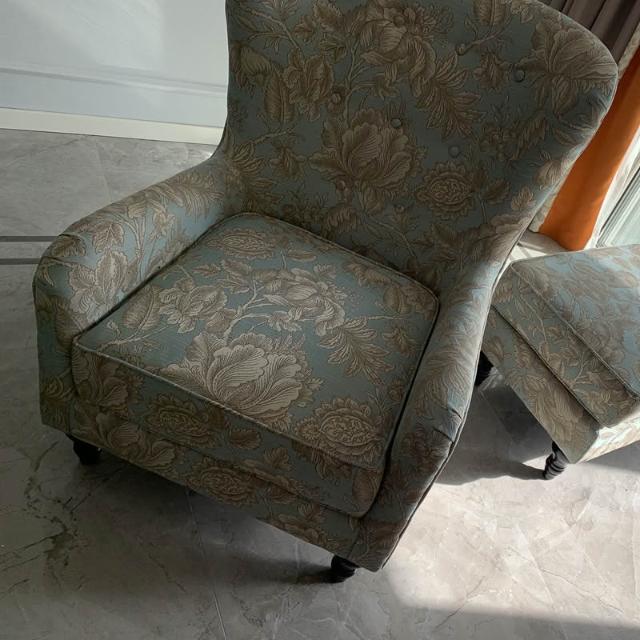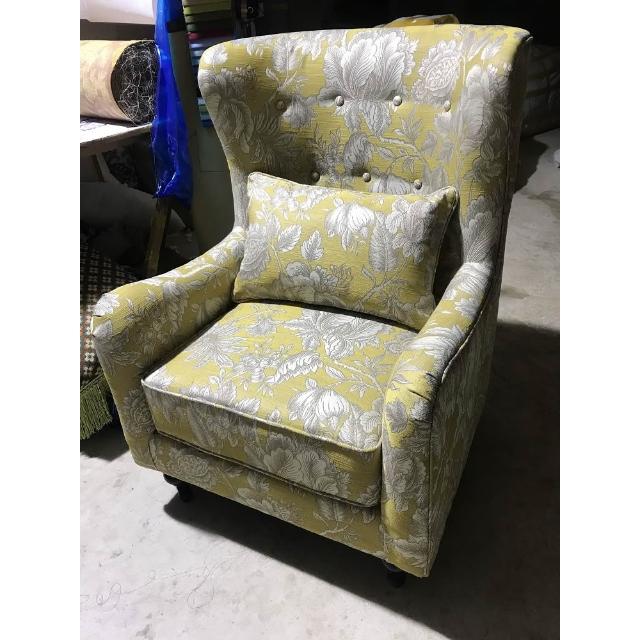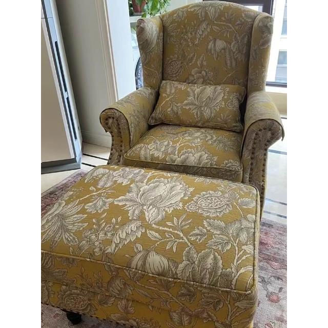 美式老虎椅布藝老虎凳傢俱單人沙發休閒椅客廳臥室乳膠黃色高背椅