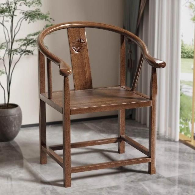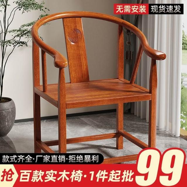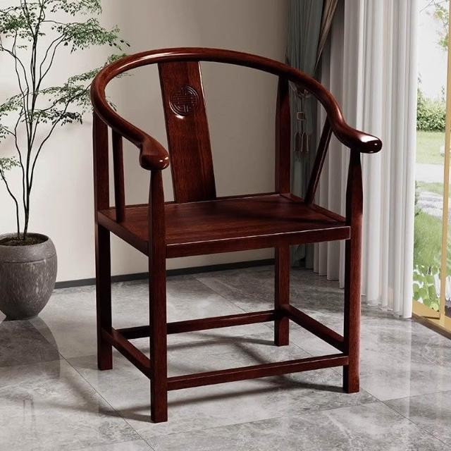 仿古月牙椅主人靠太師椅背茶桌椅酒店工程椅子新中式圈椅實木圍椅