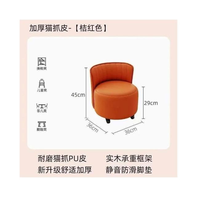 網紅溜溜小沙發椅換鞋凳客廳帶靠背圓凳子滑輪軟包沙發工廠直銷