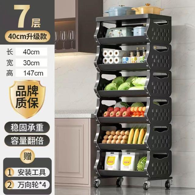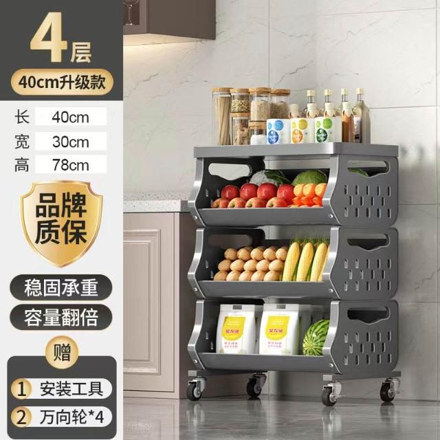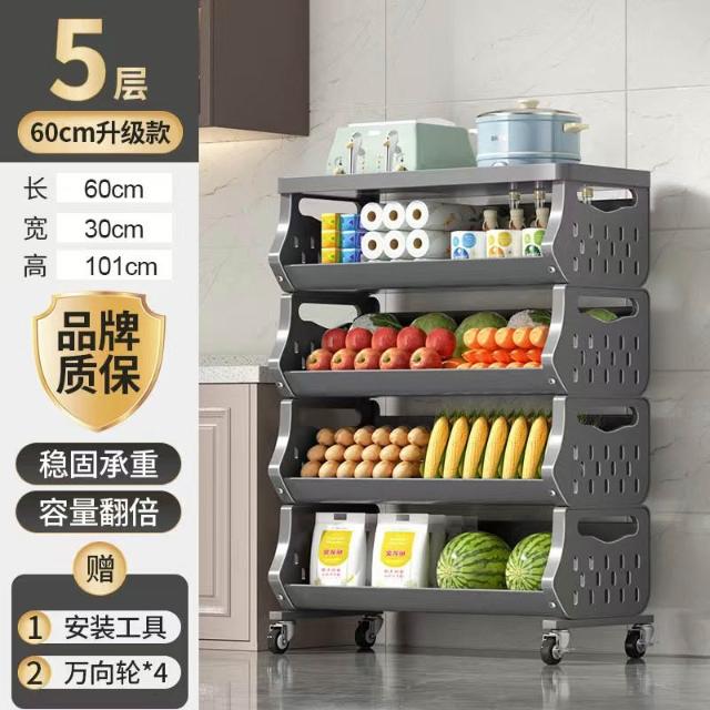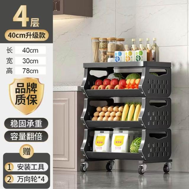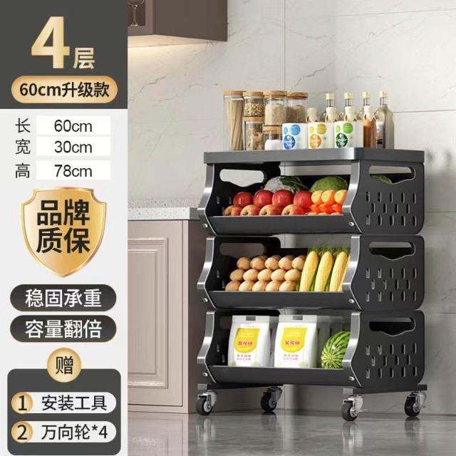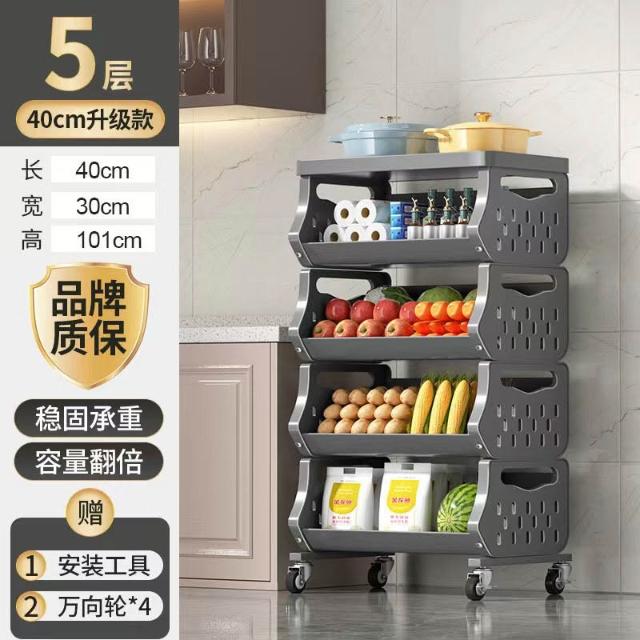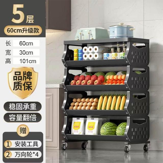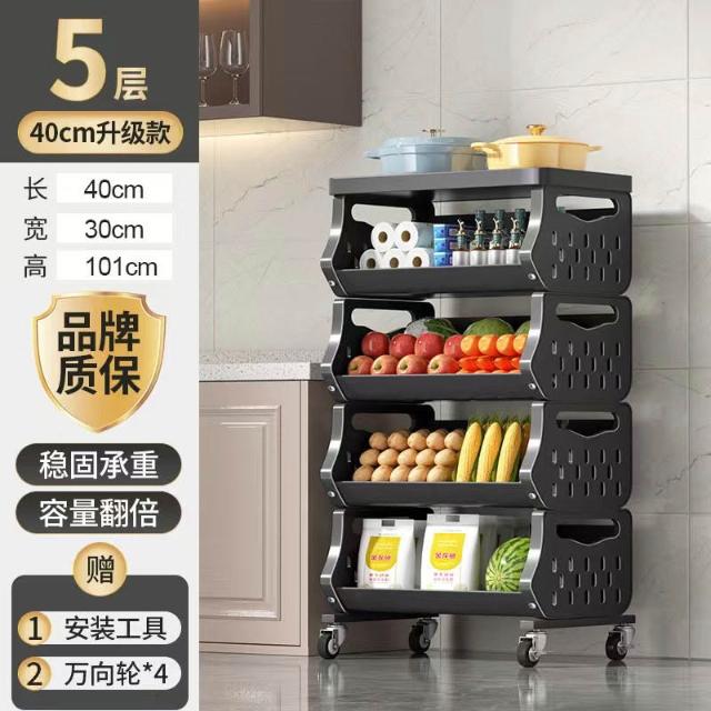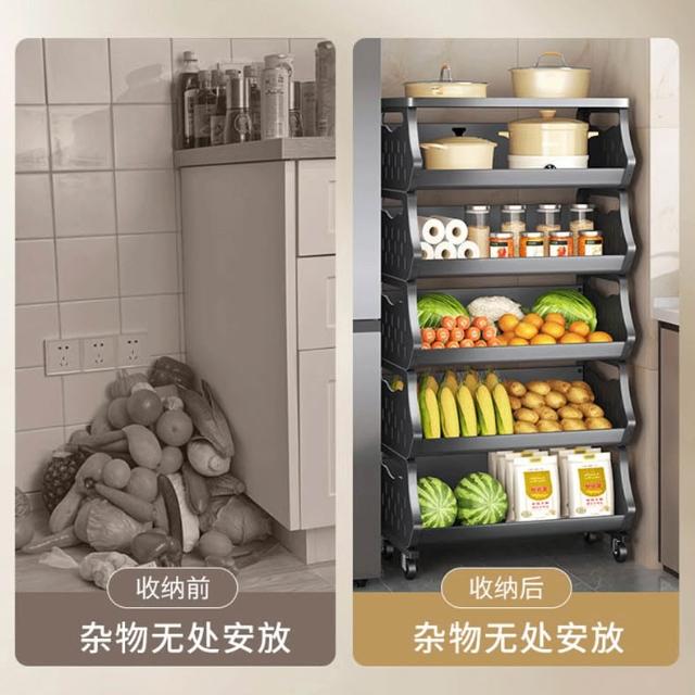 廚房菜籃子置物架 多層落地可移動水果蔬菜收納置物萬向輪小推車