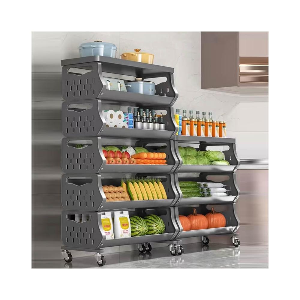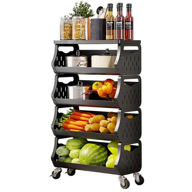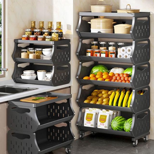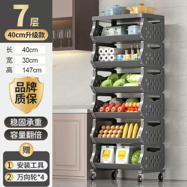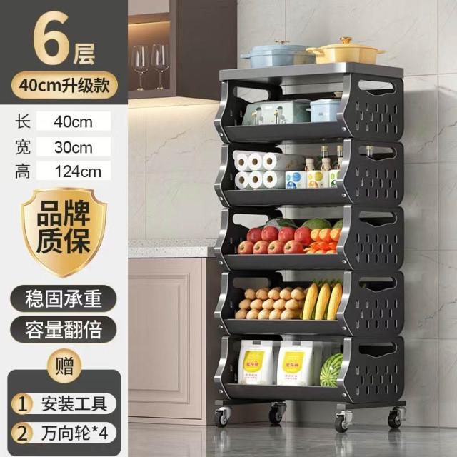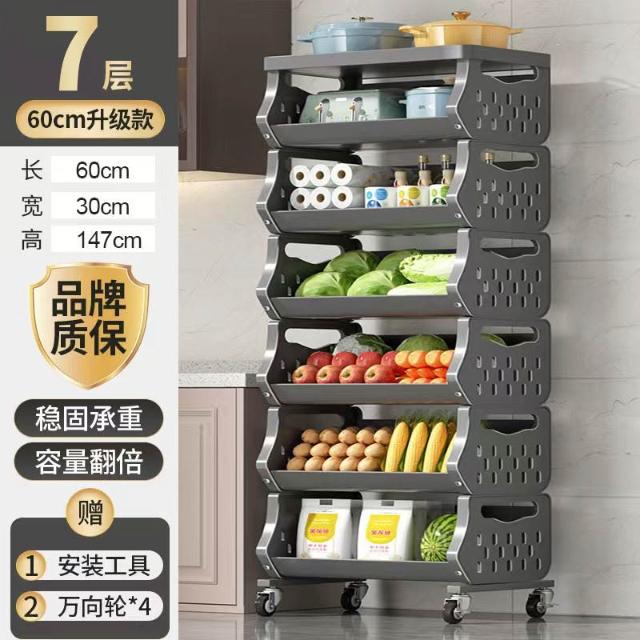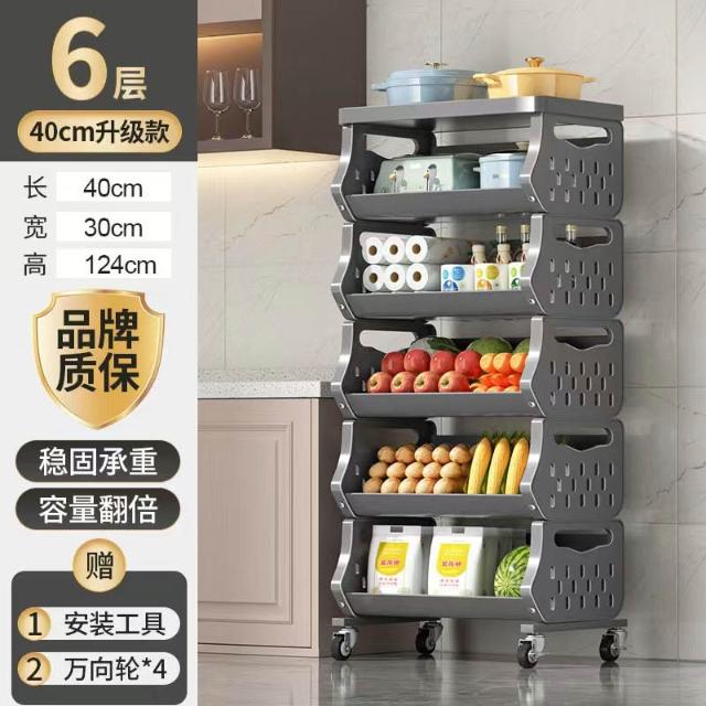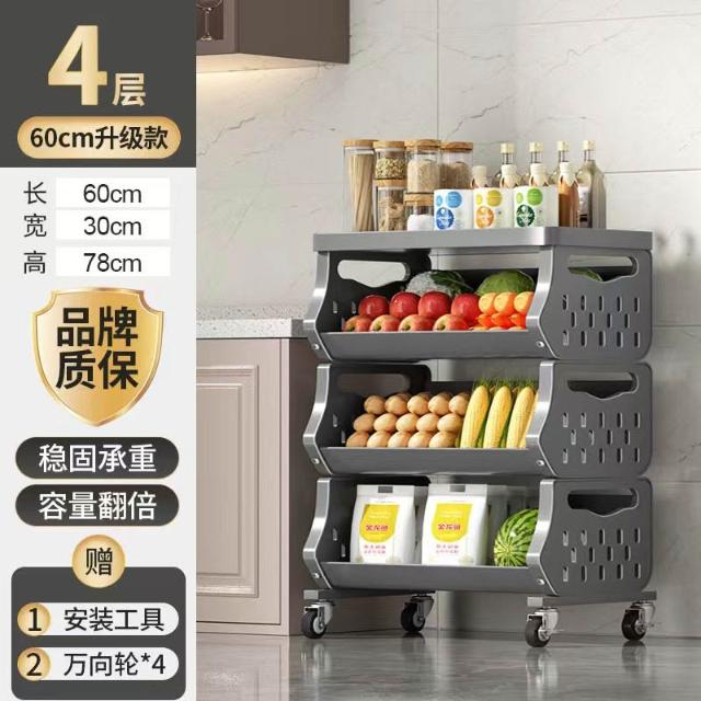 廚房菜籃子置物架 多層落地可移動水果蔬菜收納置物萬向輪小推車