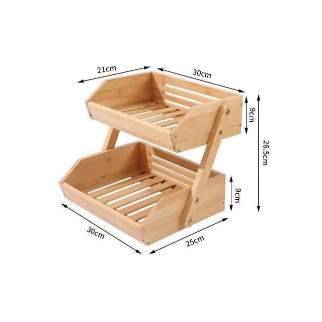 現貨楠竹桌面水果籃蔬菜麵包籃雙層置物架簡約零食雜物收納筐架子