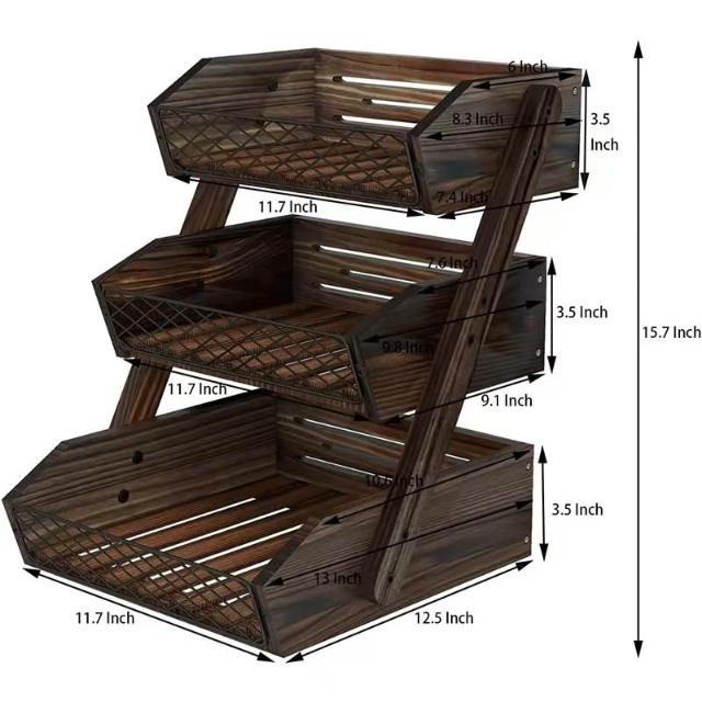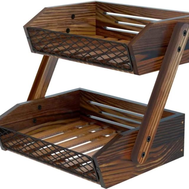 木制廚房水果置物籃廚房櫃檯2 層水果籃廚房臺面木質蔬菜儲物架