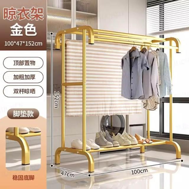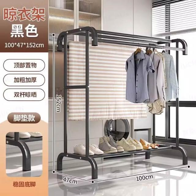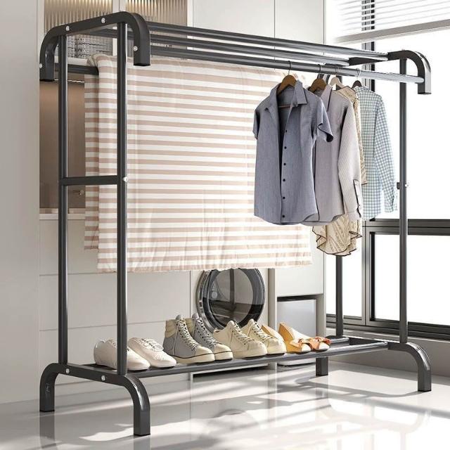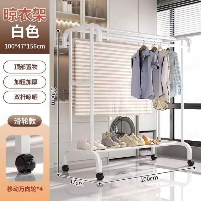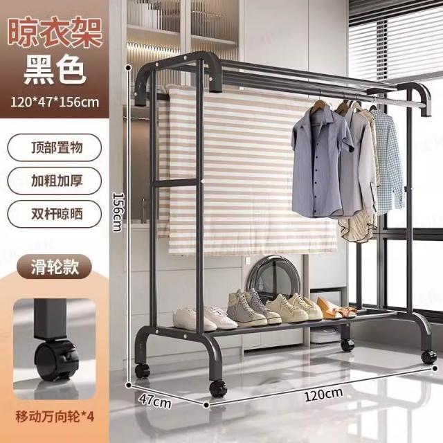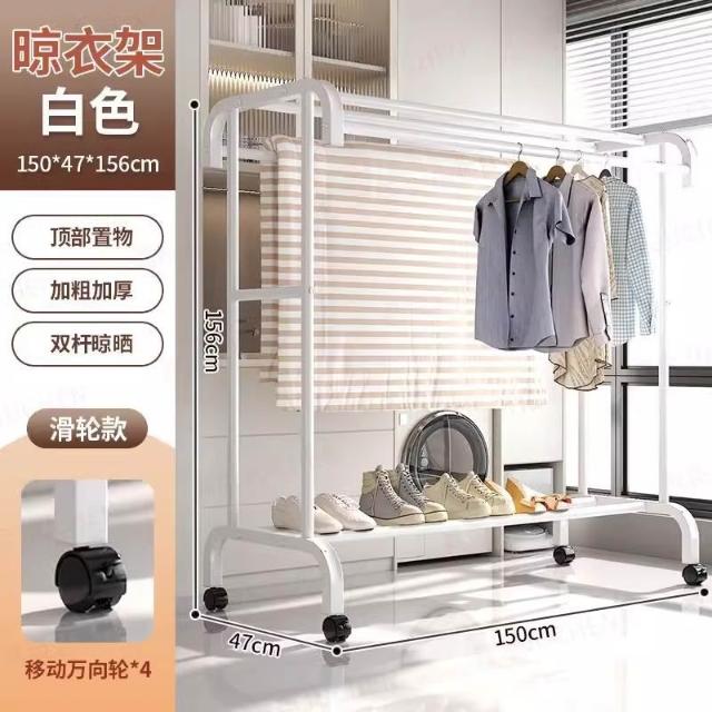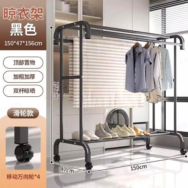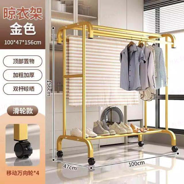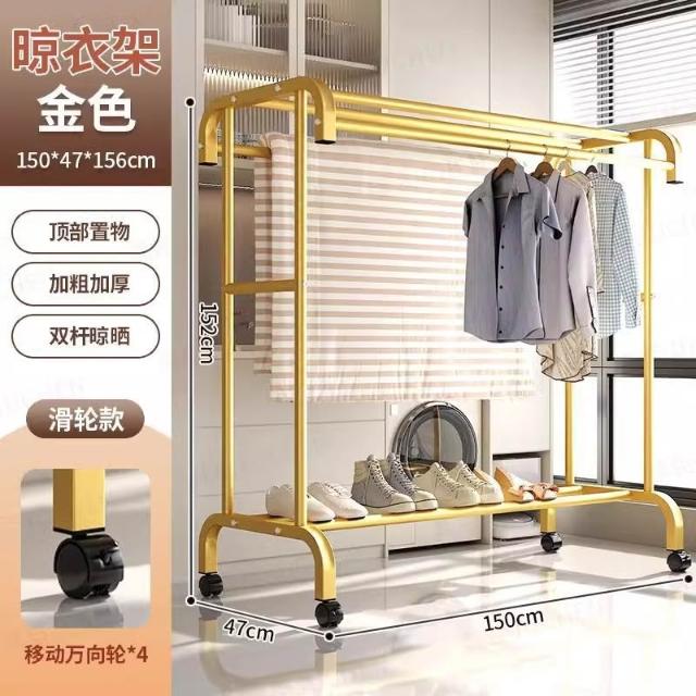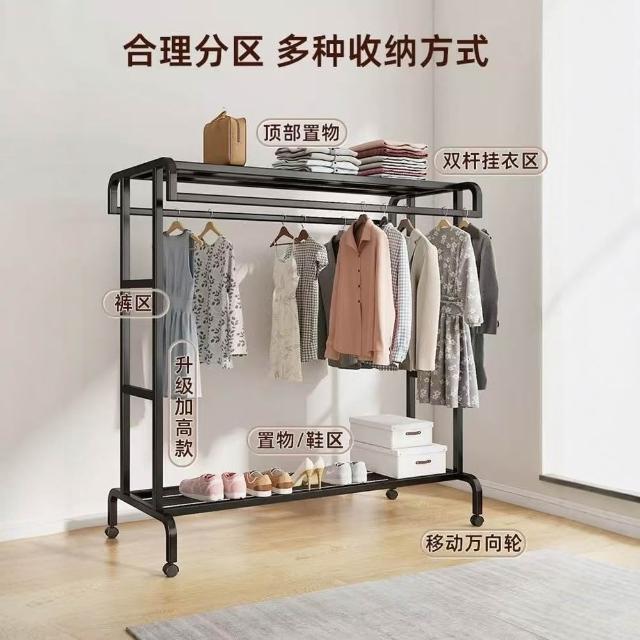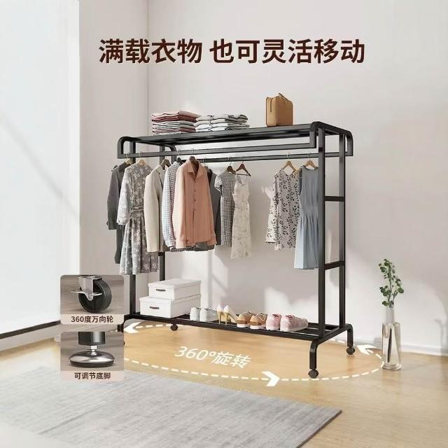 簡易衣帽架可移動晾衣架落地室內雙杆掛衣架子家用臥室衣服收納架