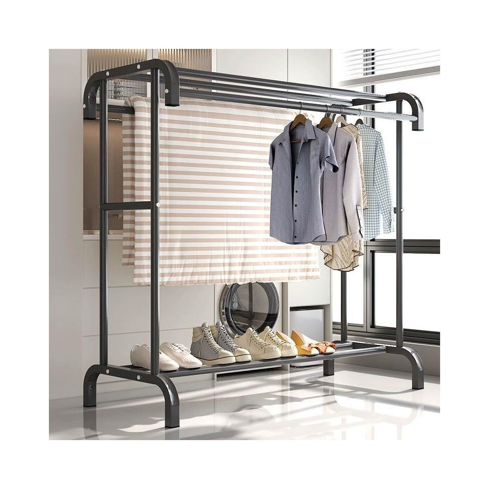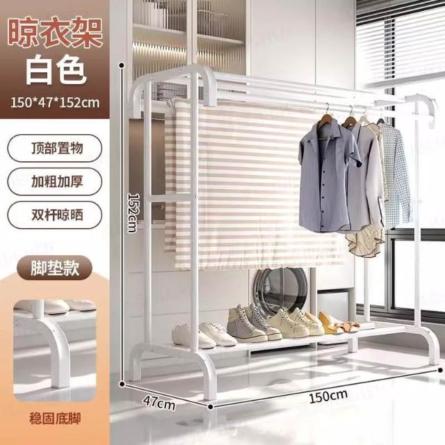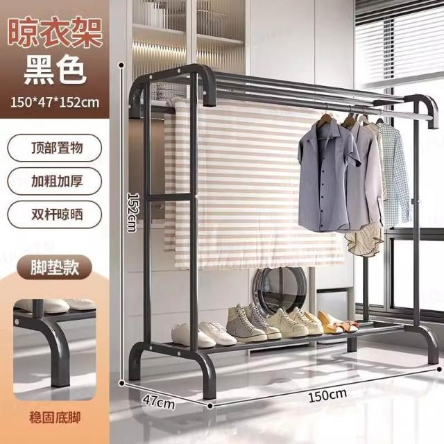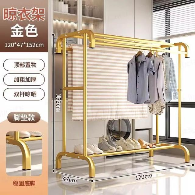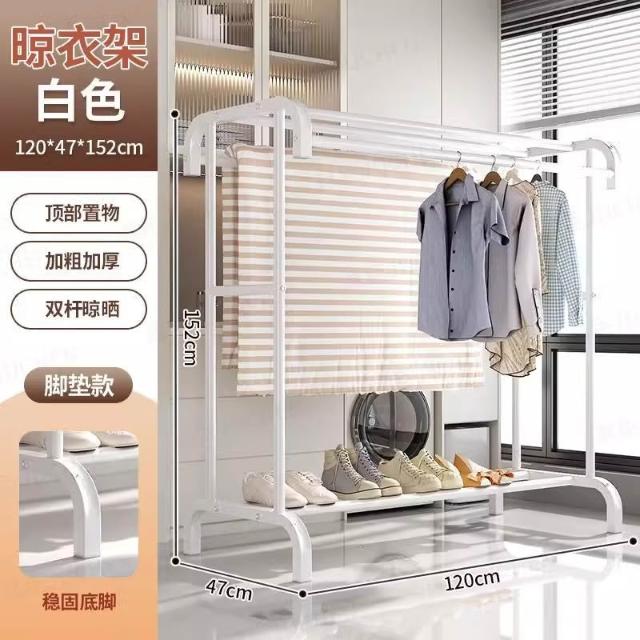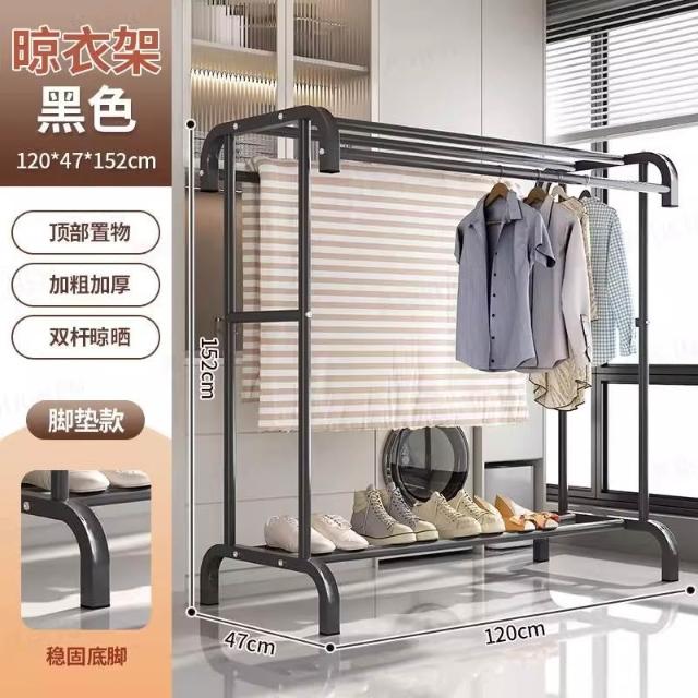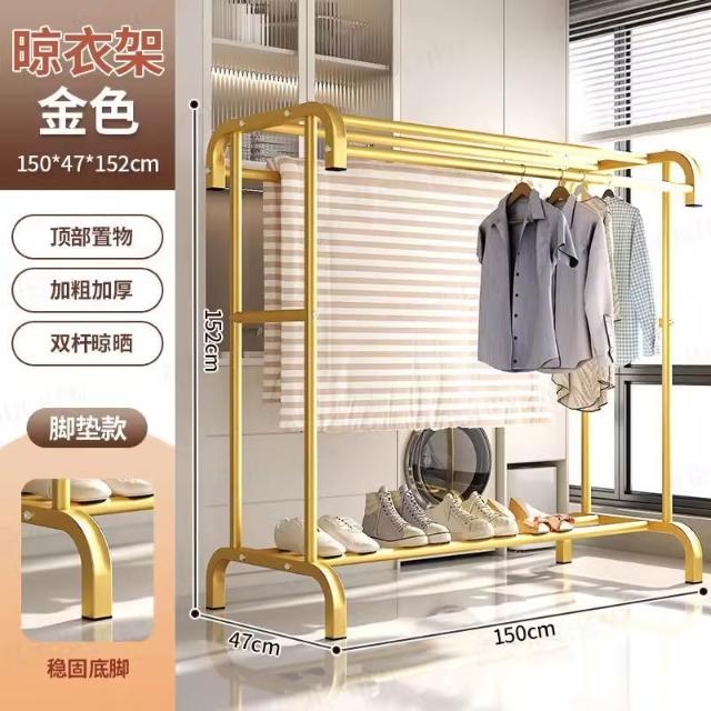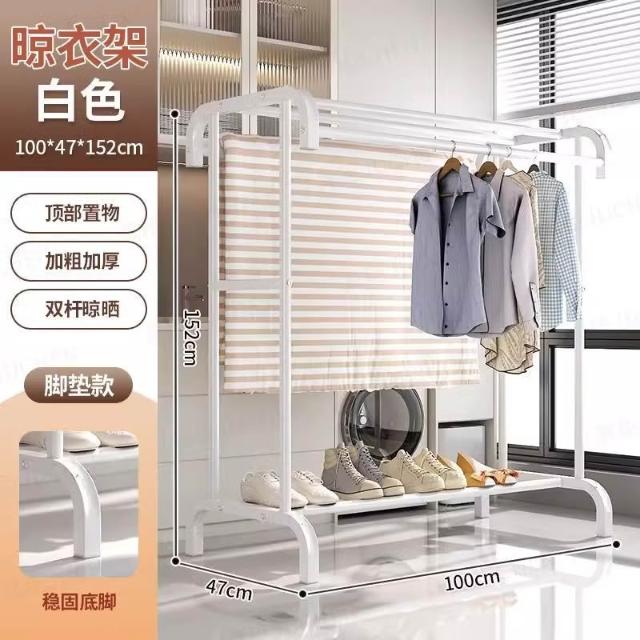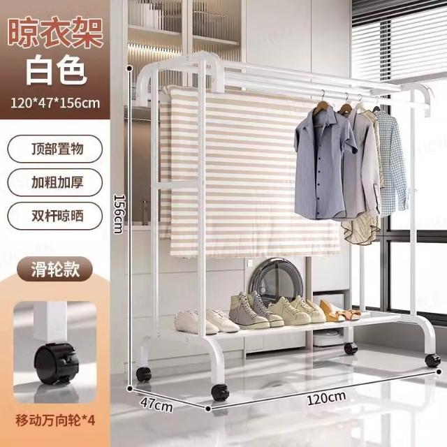 簡易衣帽架可移動晾衣架落地室內雙杆掛衣架子家用臥室衣服收納架