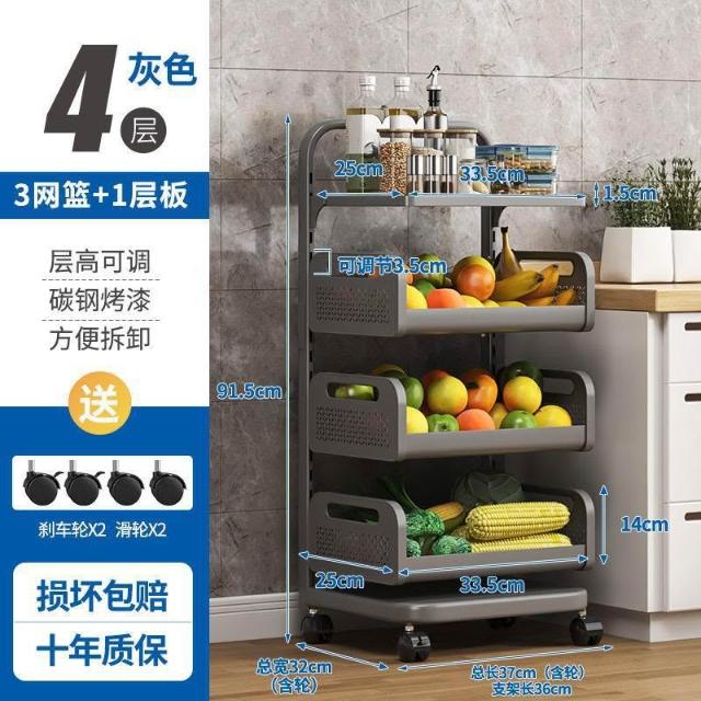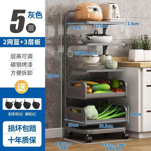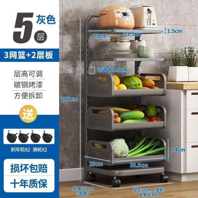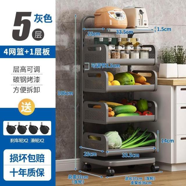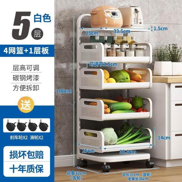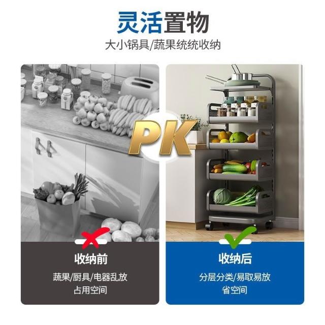 夾縫廚房置物架家用落地放多層水果蔬菜筐菜籃子儲物架鍋具收納架