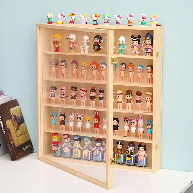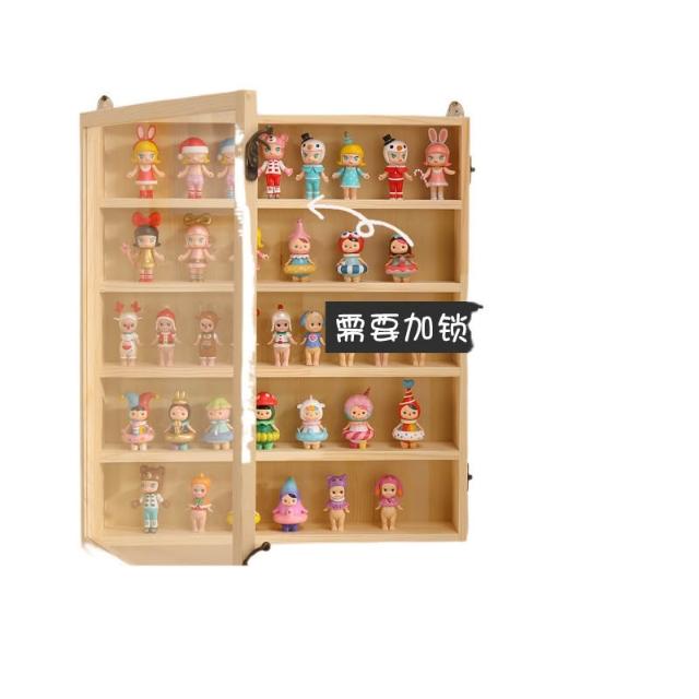 亞克力展示架泡泡瑪特盲盒收納實木手辦收納櫃Molly展示櫃掛牆