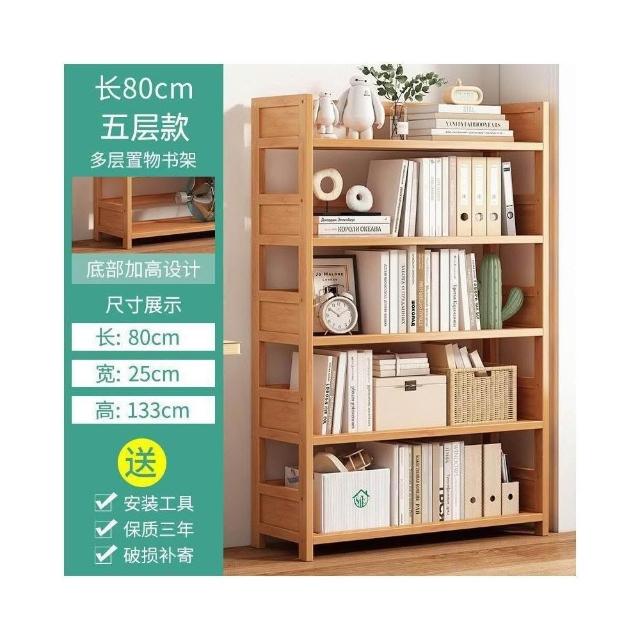 收納置物架 落地式書架 置物架 多層家用 辦公室簡易 客廳 實木書櫃 靠牆收納置物架