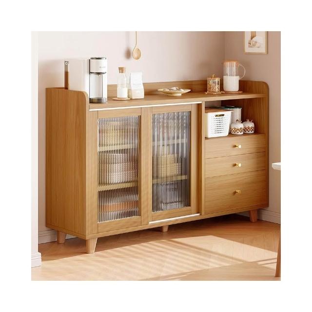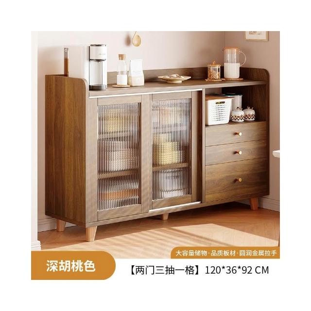 中古風餐邊櫃 日式 實木色 靠牆一體 客廳茶水櫃 置物櫃 收納櫃 廚房櫃