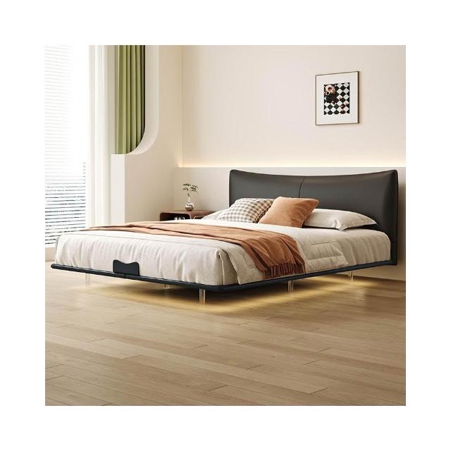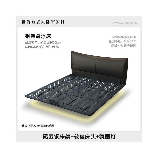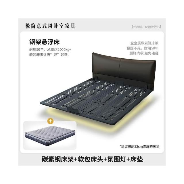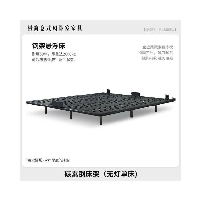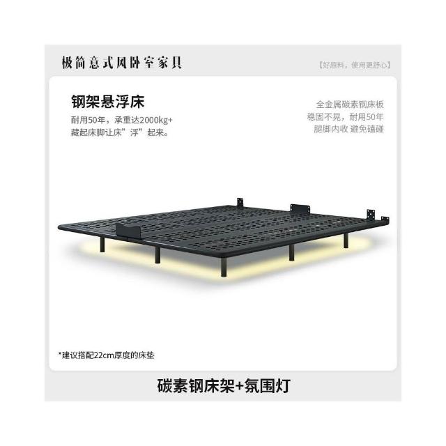 無床頭 懸浮床 極簡現代 主臥室 鐵架床 雙人婚床 新款輕奢風