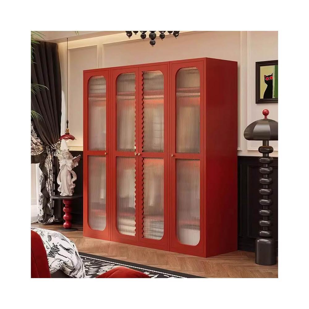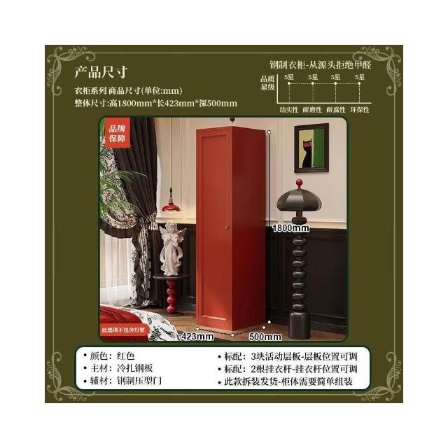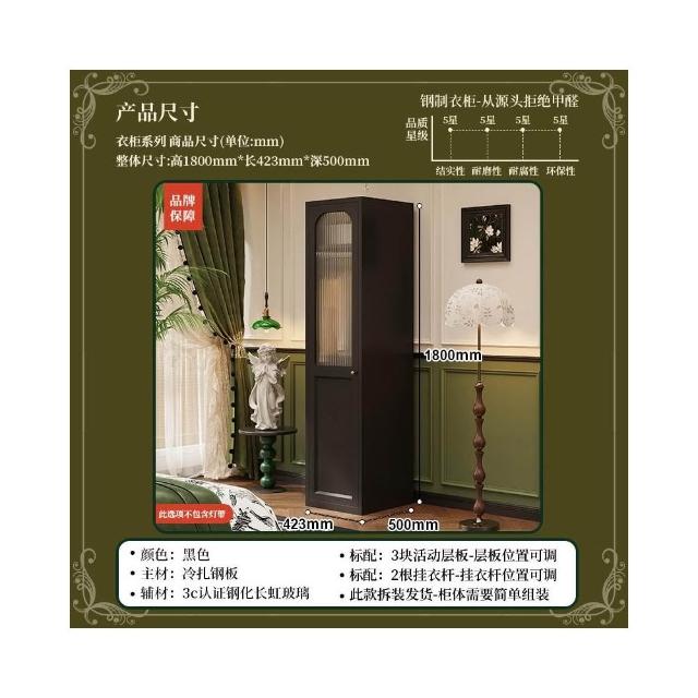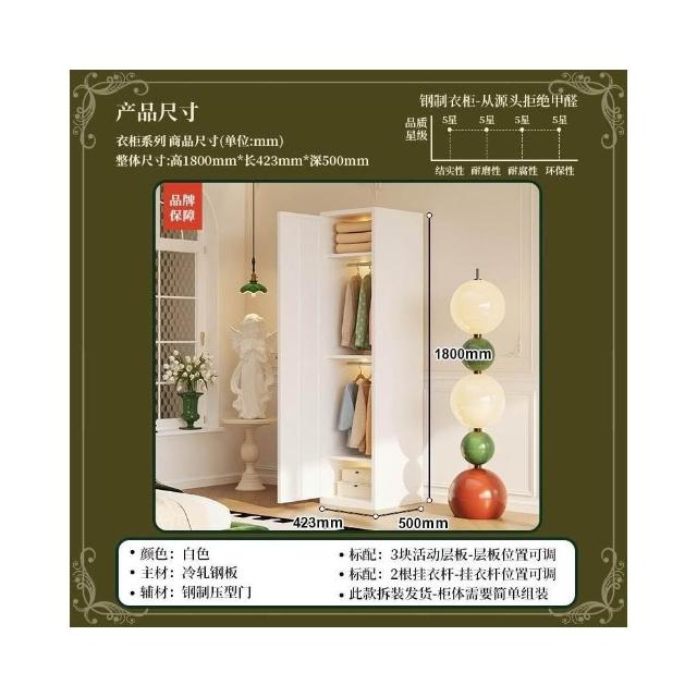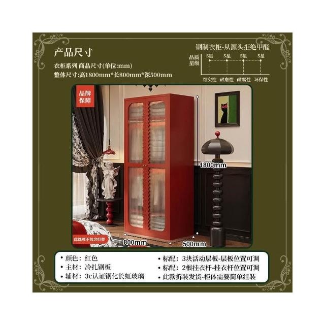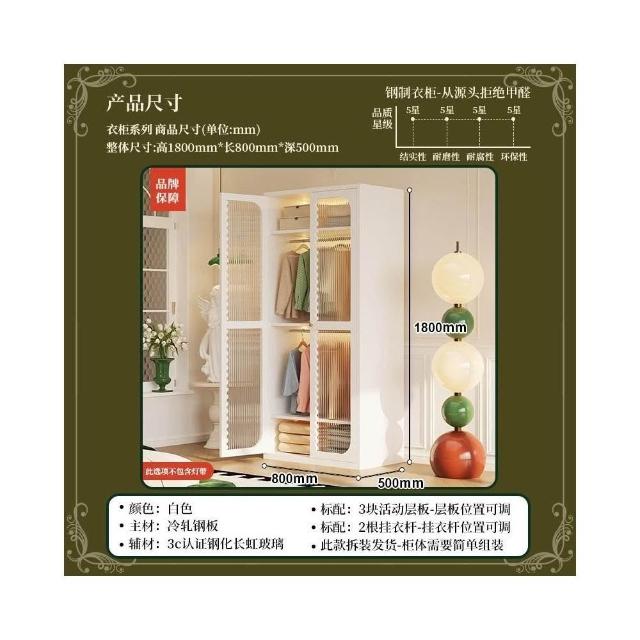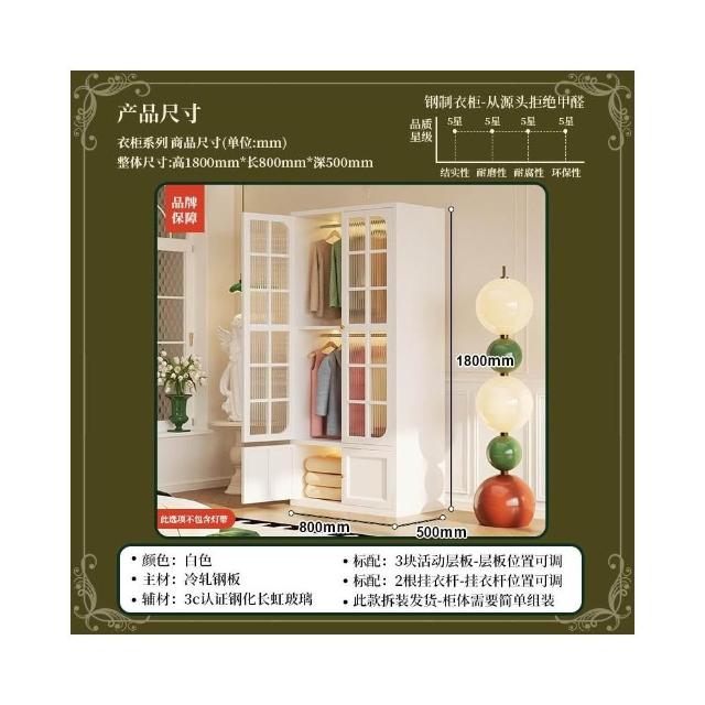 輕奢衣櫃 奶油風 鐵皮 無甲醛 收納櫃 家用 臥室 鐵藝 長虹玻璃衣櫥儲物櫃