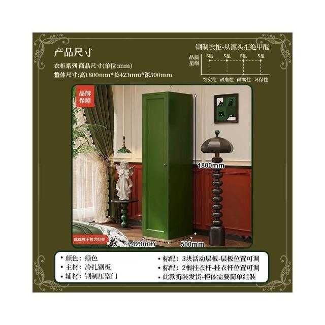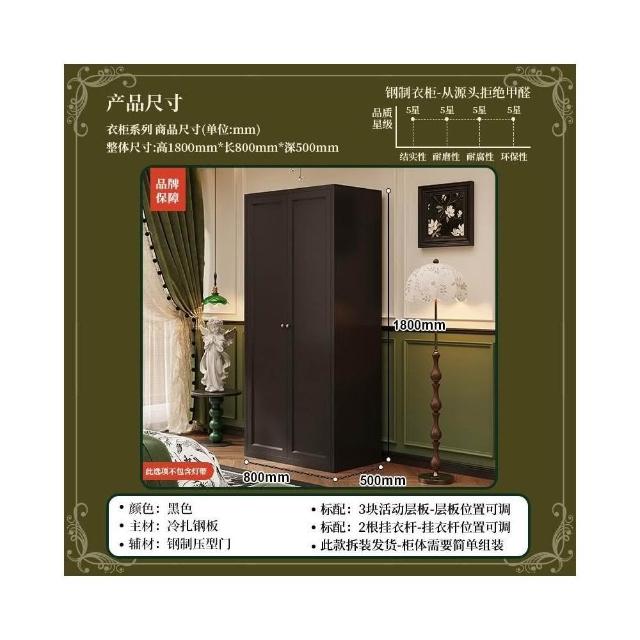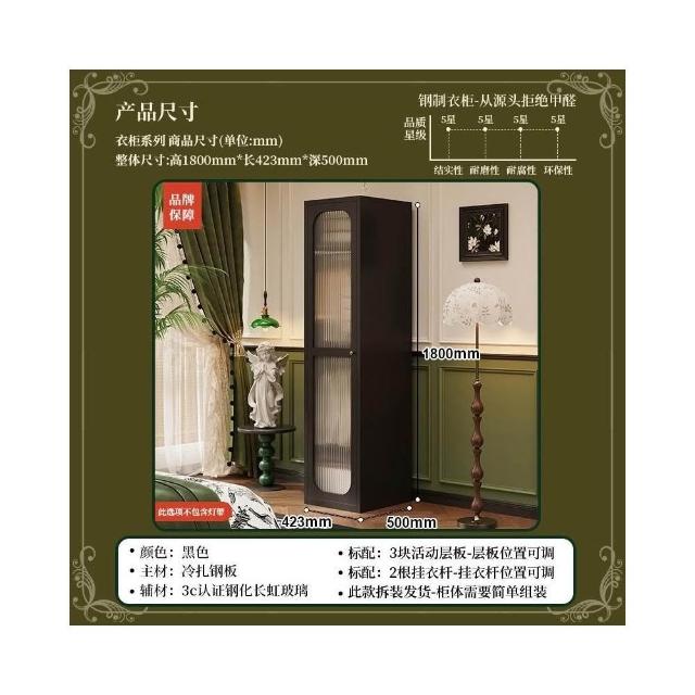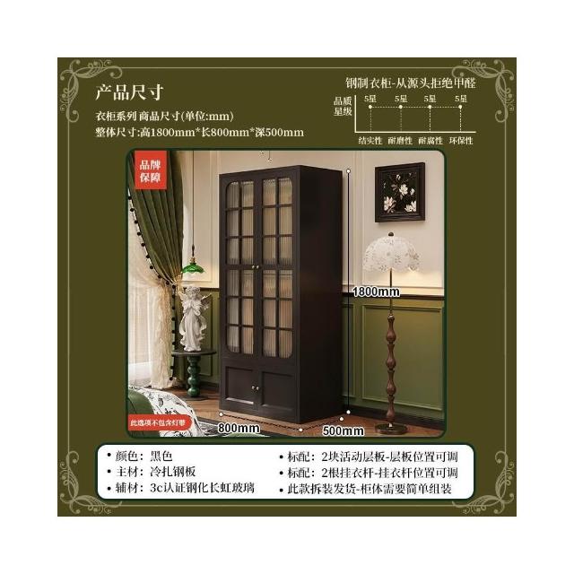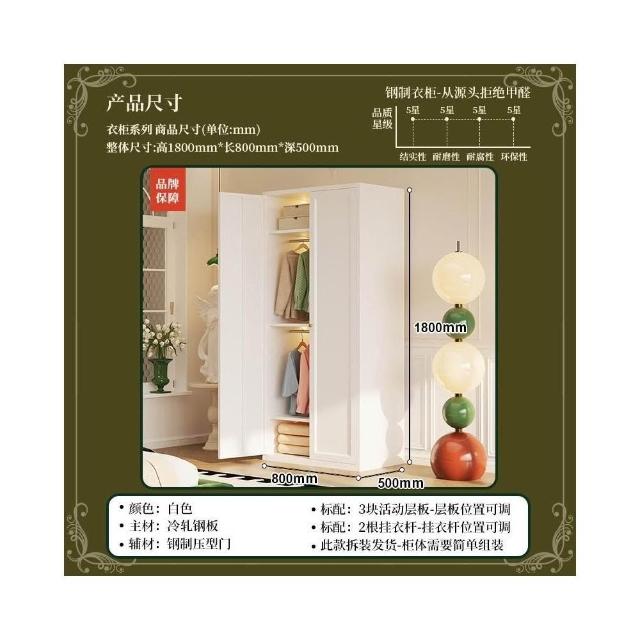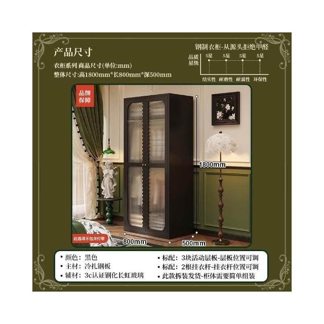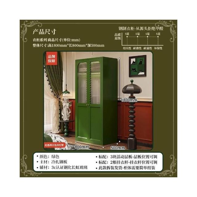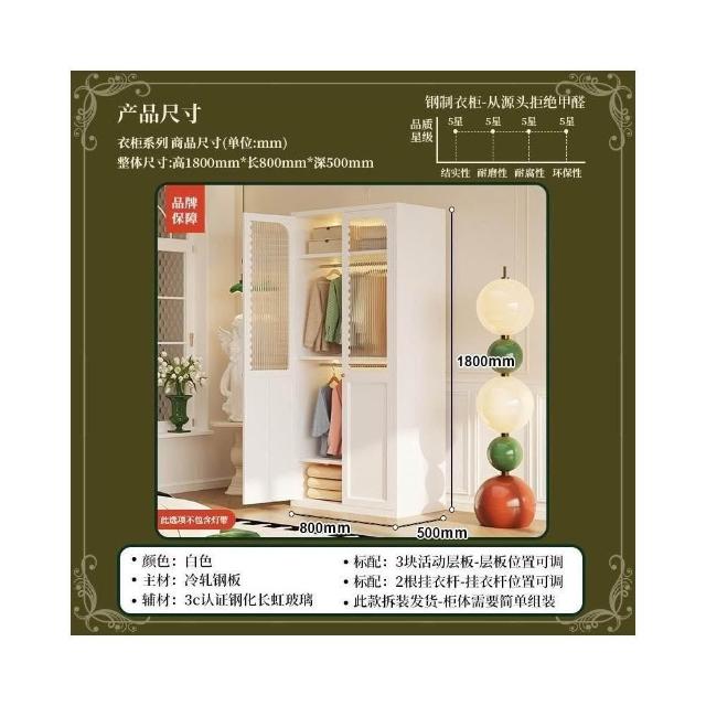輕奢衣櫃 奶油風 鐵皮 無甲醛 收納櫃 家用 臥室 鐵藝 長虹玻璃衣櫥儲物櫃