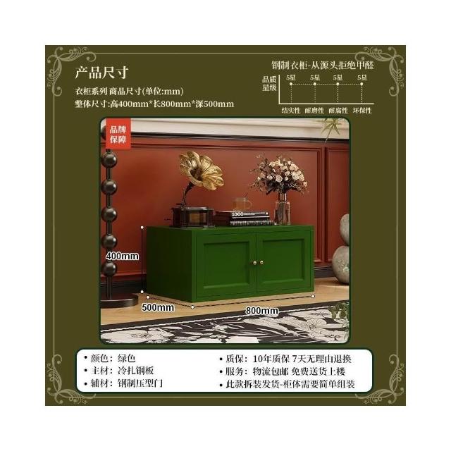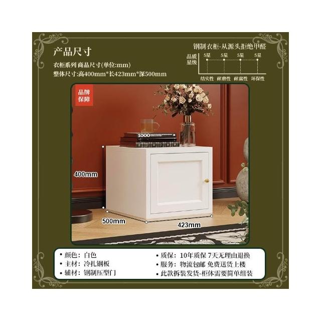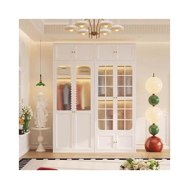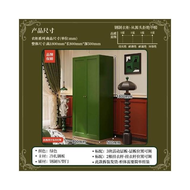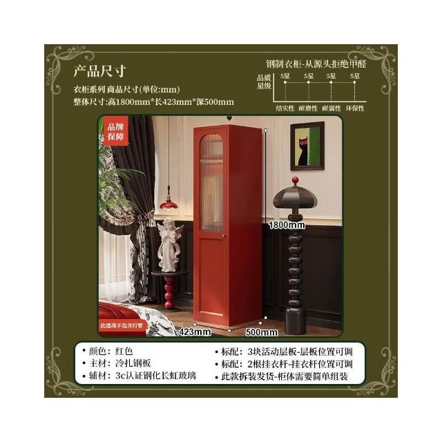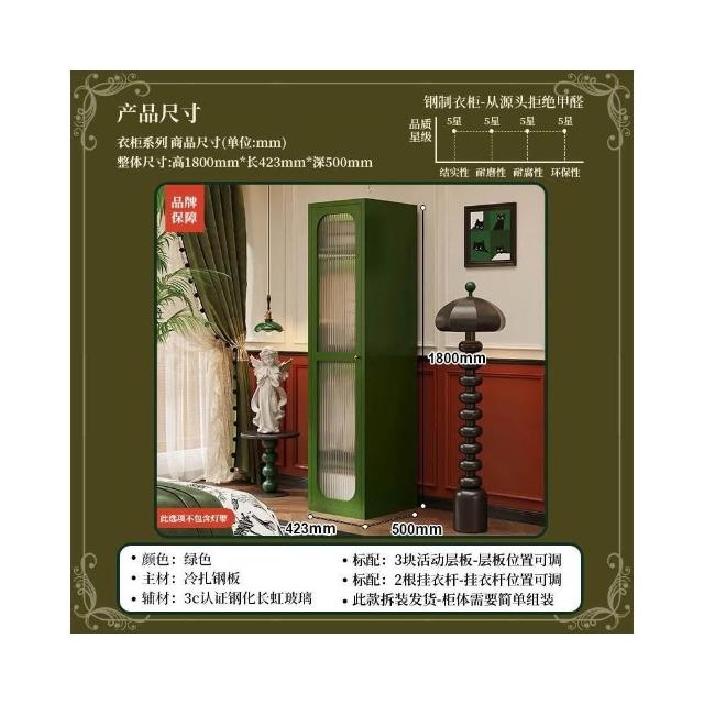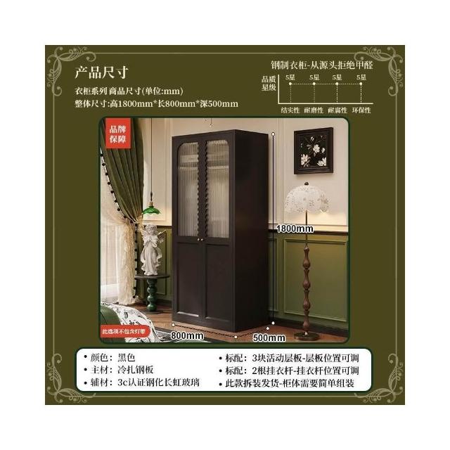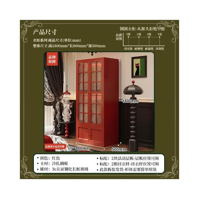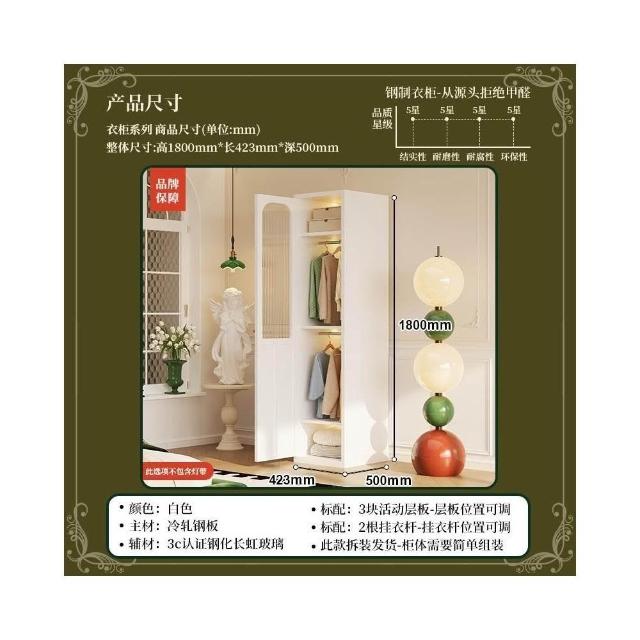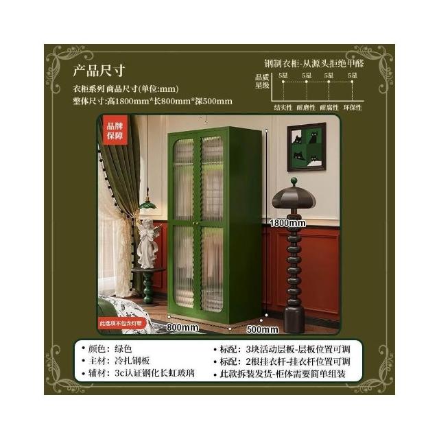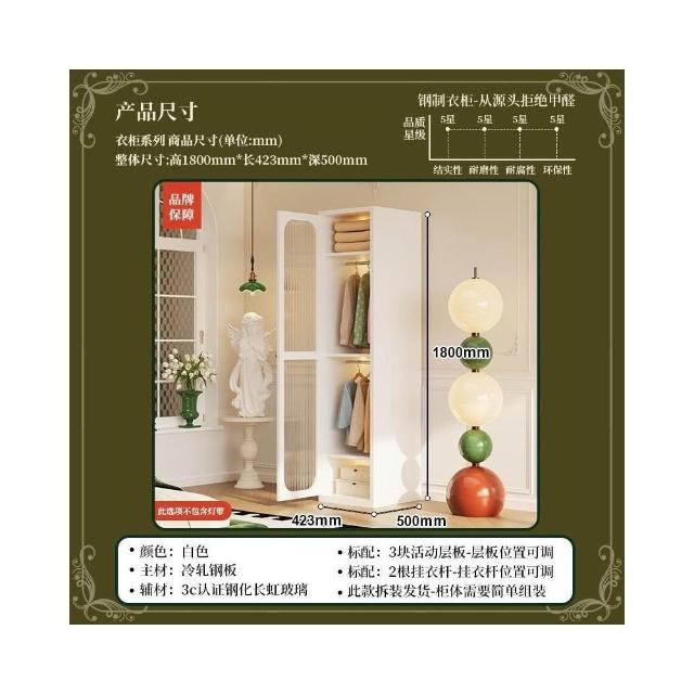 輕奢衣櫃 奶油風 鐵皮 無甲醛 收納櫃 家用 臥室 鐵藝 長虹玻璃衣櫥儲物櫃