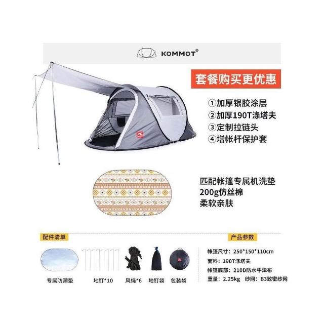 KOMMOT牧徹速開帳篷戶外露營防雨過夜防曬全自動免搭建