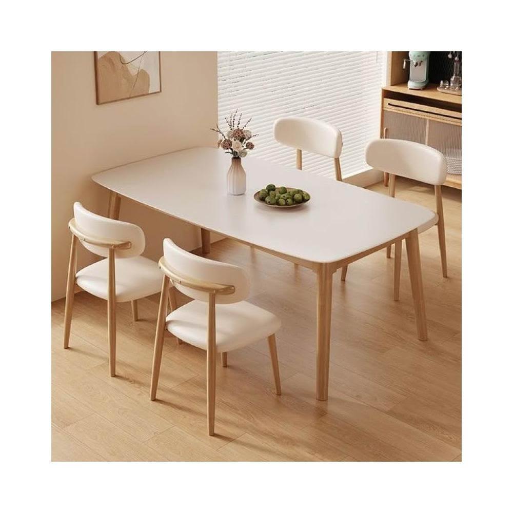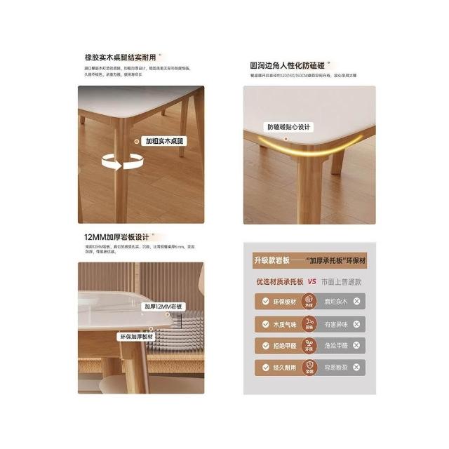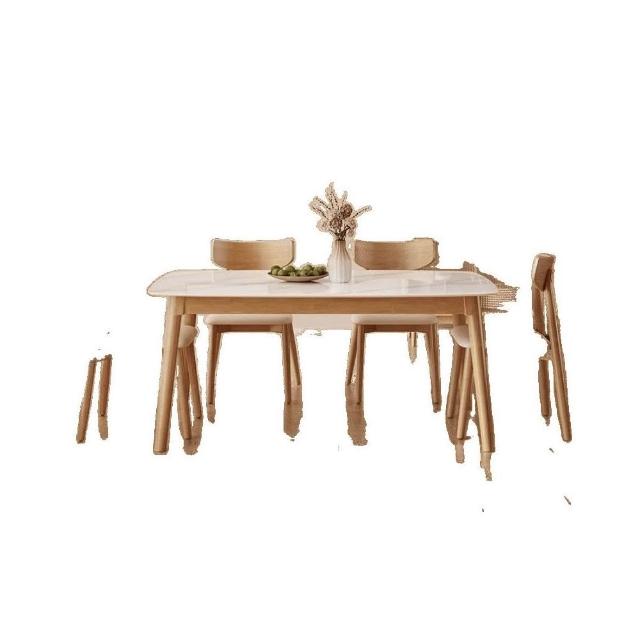 合枋傢俱 原木色岩板餐桌現代簡約家用小戶型吃飯桌子奶油風長方形餐桌椅