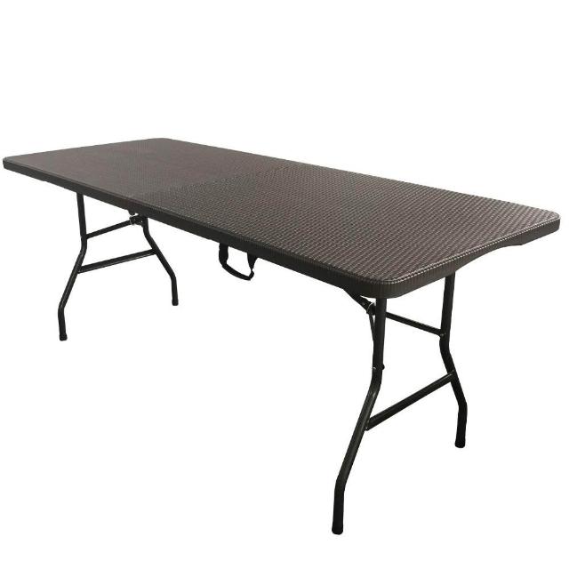 工廠供應1米8仿藤紋塑膠 6尺折疊桌套裝戶內外用耐髒防雨便攜