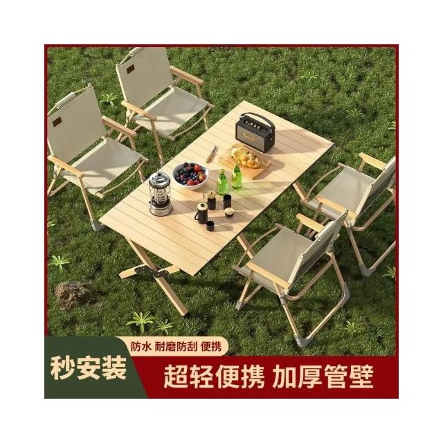 戶外折疊桌蛋卷桌可攜式超輕露營桌子野營桌椅輕便野炊木紋野餐桌