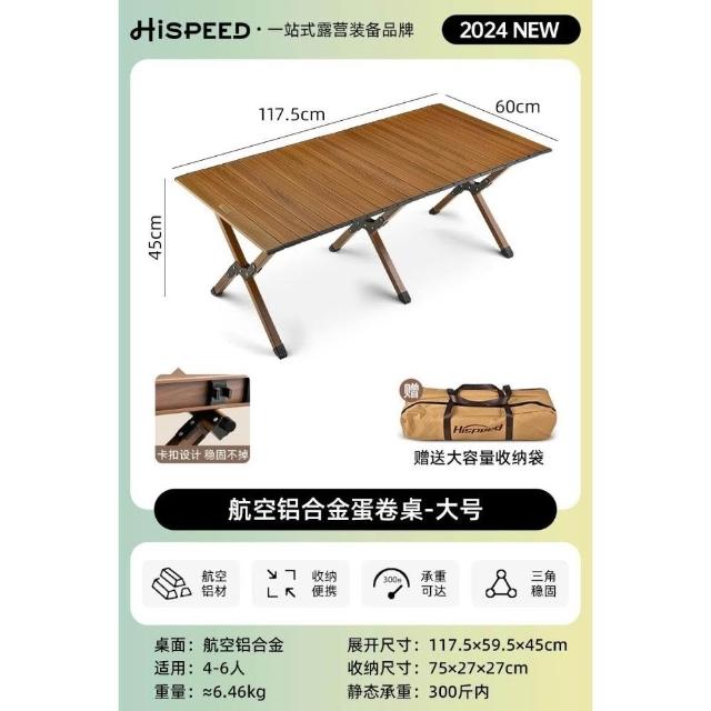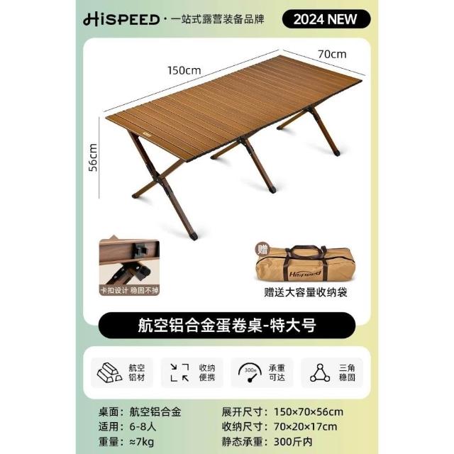 Hispeed旗速戶外桌椅折疊桌鋁合金蛋卷桌子可攜式野餐桌露營裝備