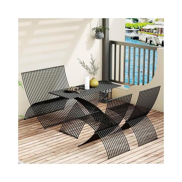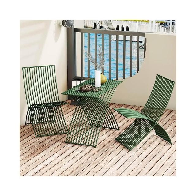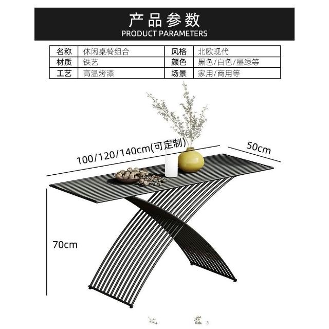 簡約陽臺庭院露臺戶外桌椅組合個性創意鐵條桌椅奶茶店折疊桌椅