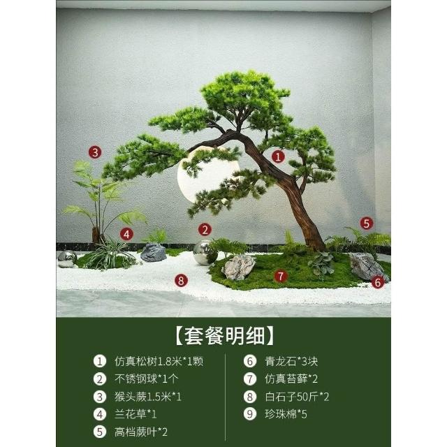 合枋傢俱 高端仿真松樹迎客松室內櫥窗樓梯綠植造景黑松羅漢松大型景觀假樹