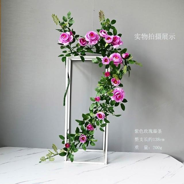 合枋傢俱 廠家直銷 仿真玫瑰花藤 假花藤蔓婚慶裝飾玫瑰花絹花批發攝影道具