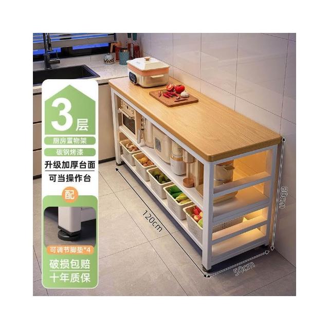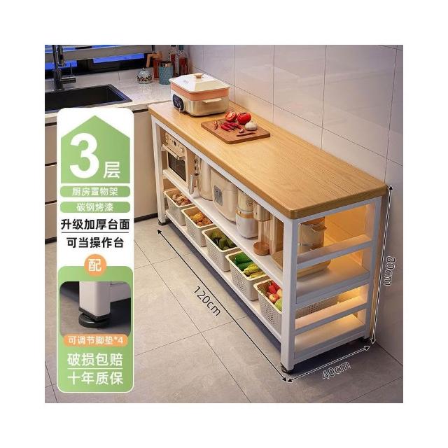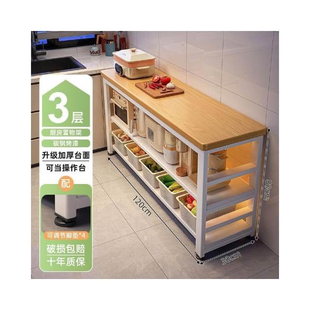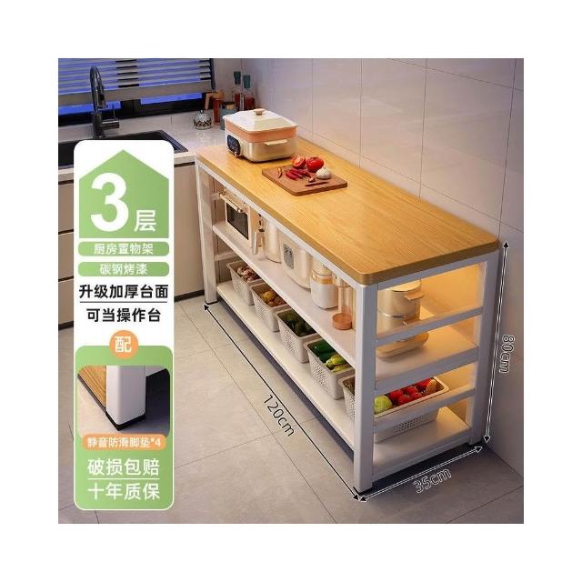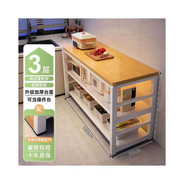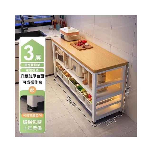 廚房多功能置物架落地切菜桌子工作臺多層微波爐鍋具收納架窄邊櫃