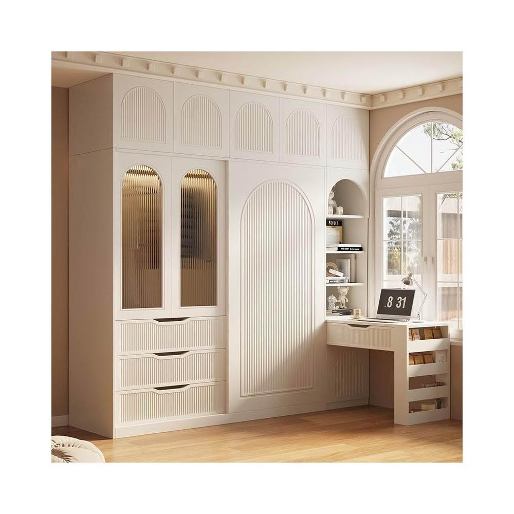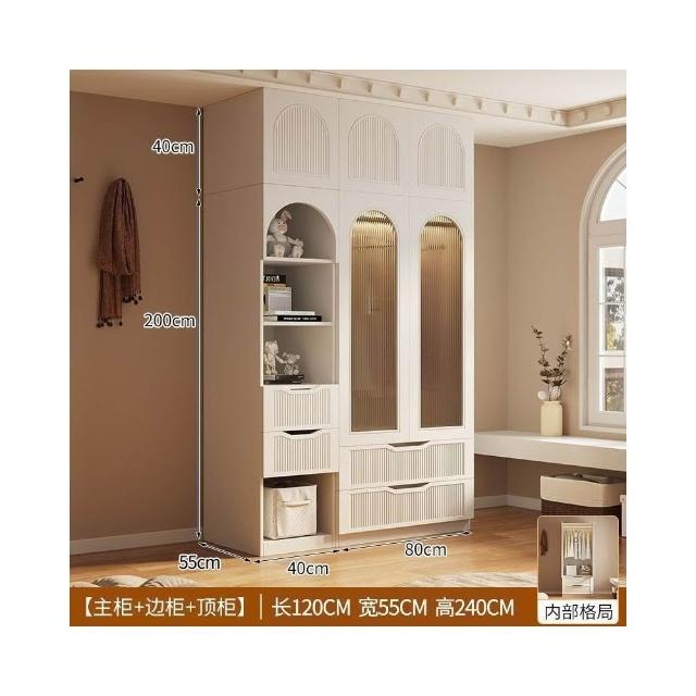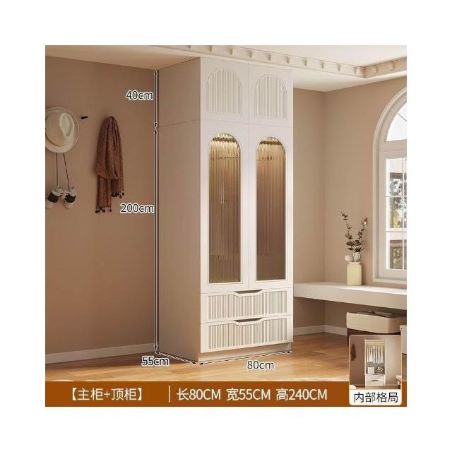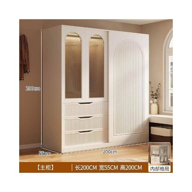 合枋傢俱 法式奶油風衣櫃家用臥室小戶型輕奢推拉門收納衣櫥衣櫃