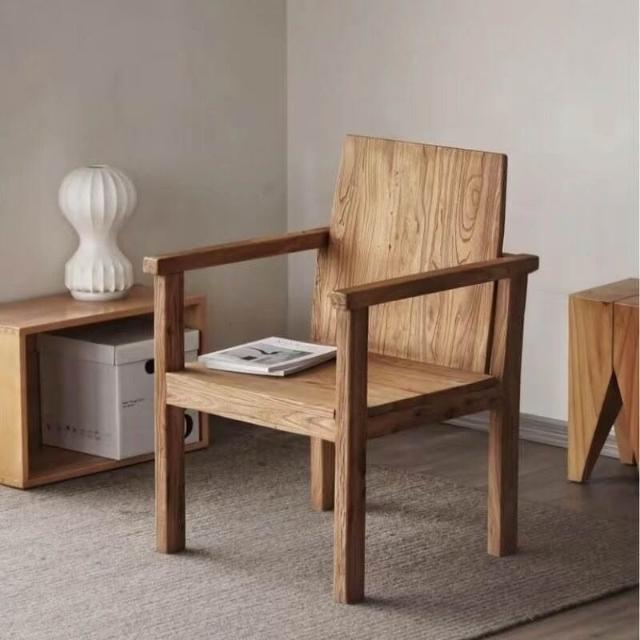 合枋家具 新中式老榆木椅子家用靠背喝茶椅餐椅禅意民宿咖啡館板凳實木圈椅