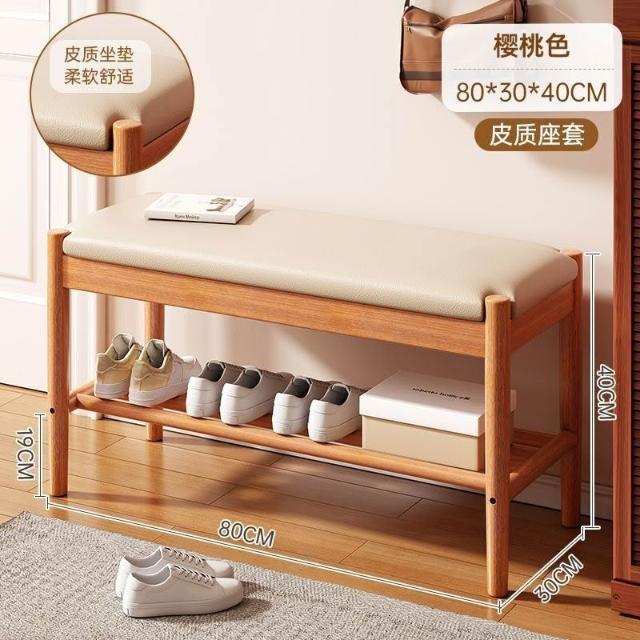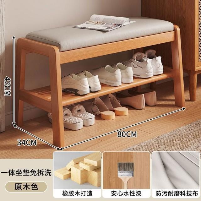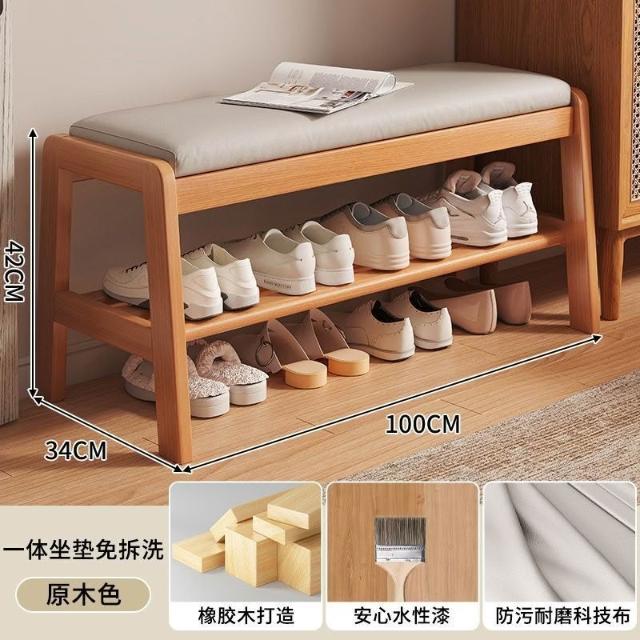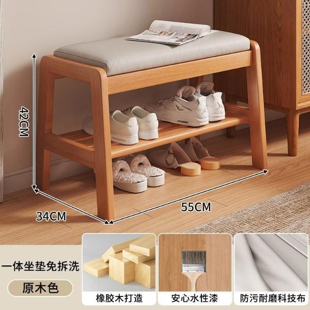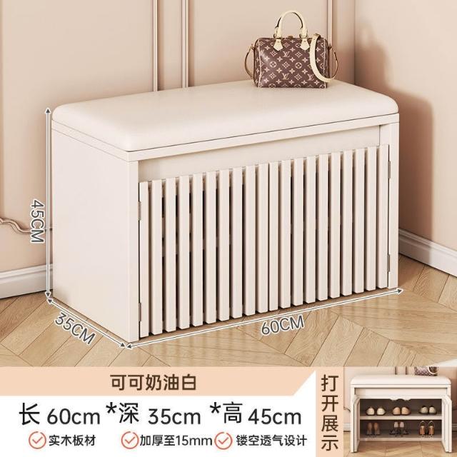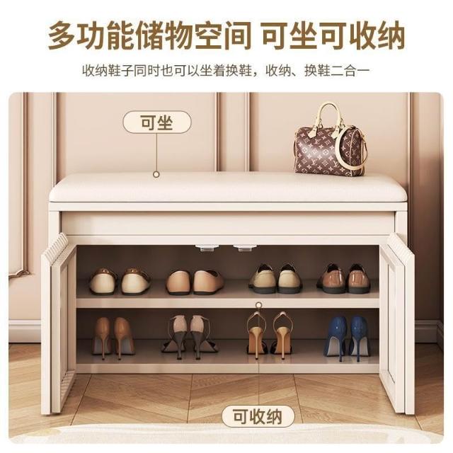 合枋家具 實木換鞋凳門口家用鞋櫃坐凳一體入戶奶油風鞋架可坐穿鞋凳進門凳