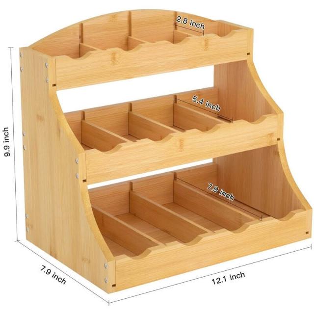 工廠直髮 三層木質收納架立式咖啡茶包收納盒廚房臺面分格調料瓶儲物架