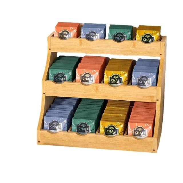 工廠直髮 三層木質收納架立式咖啡茶包收納盒廚房臺面分格調料瓶儲物架